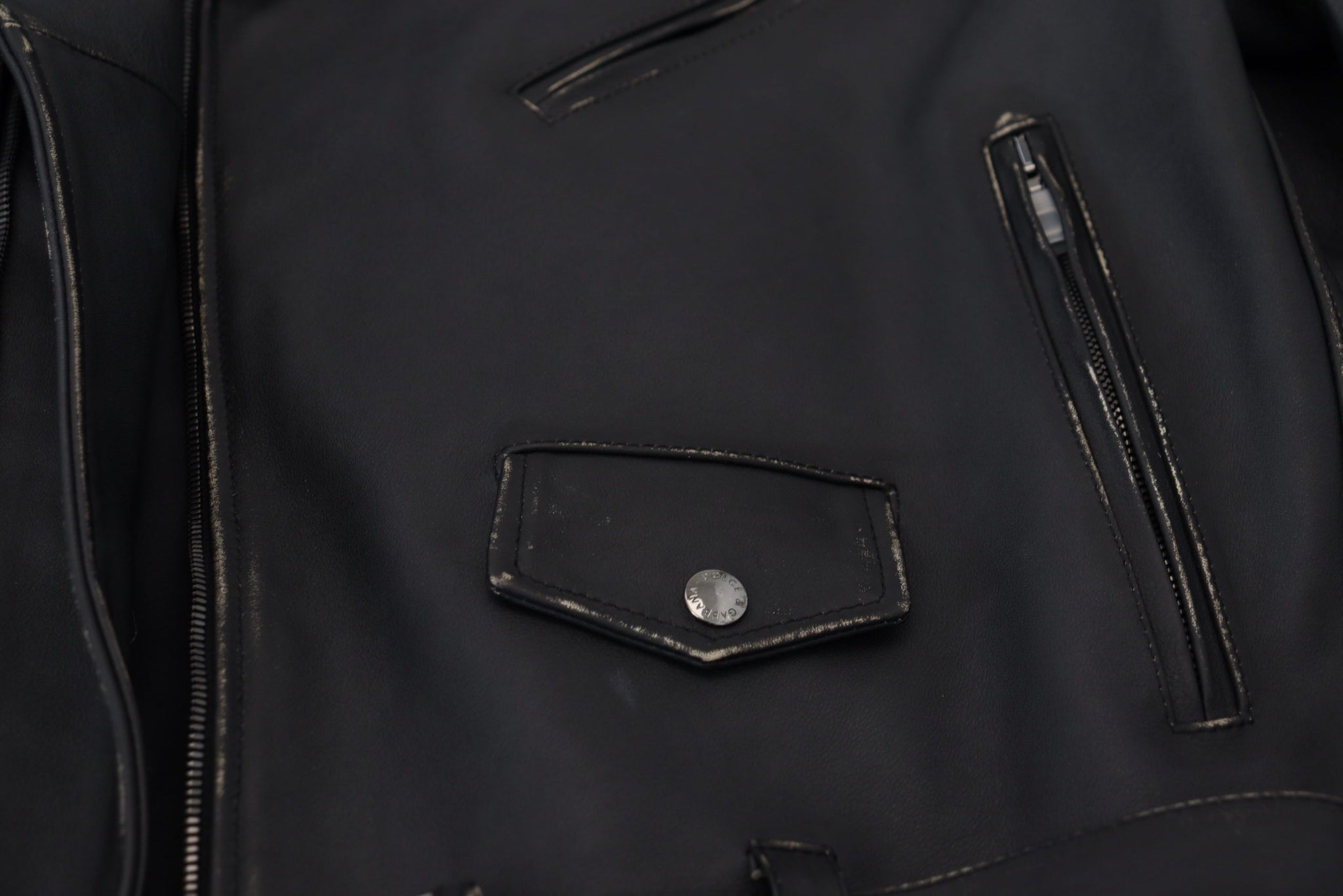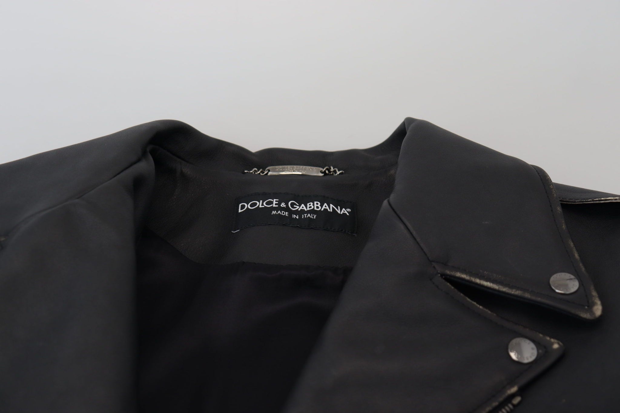 Immerse yourself in the epitome of luxury and style with this absolutely stunning, 100% authentic biker motorcycle jacket by Dolce & Gabbana. This premium black leather jacket isn’t just a garment; it’s a statement piece that exudes sophistication and edginess. It features a sleek full zipper closure, four convenient front pockets, and distinctive logo engraved metal detailing, all designed to offer you an impeccable fit and unparalleled comfort. Proudly made in Italy, it is the perfect addition to elevate any ensemble.