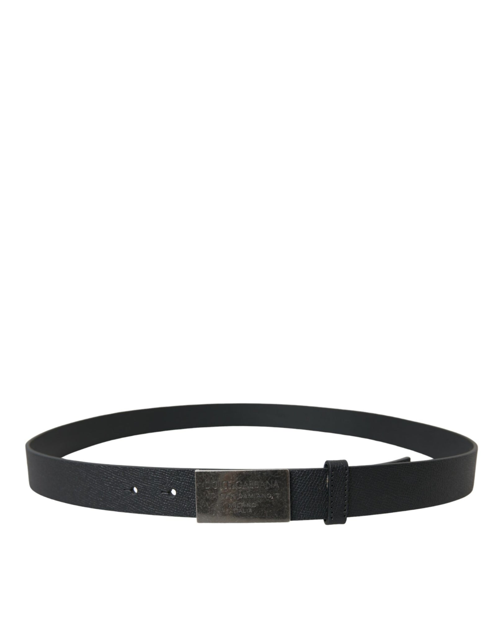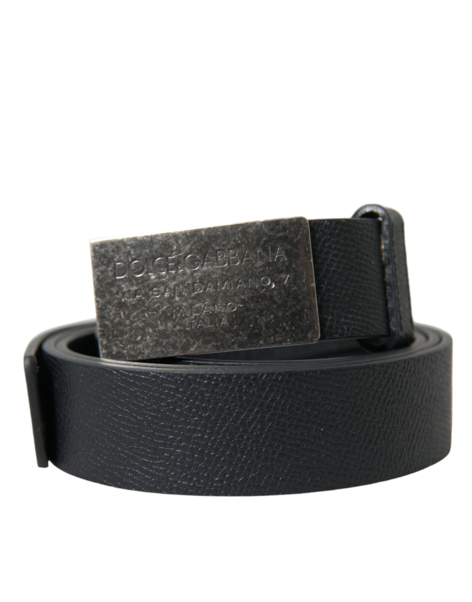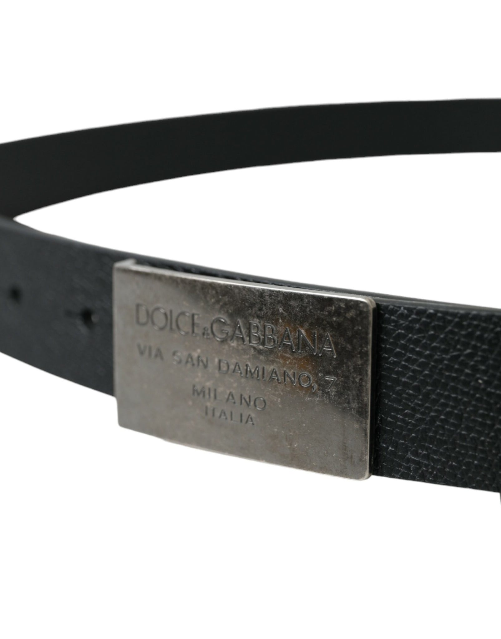 Dolce & Gabbana Black Leather Rectangle Metal Buckle Belt