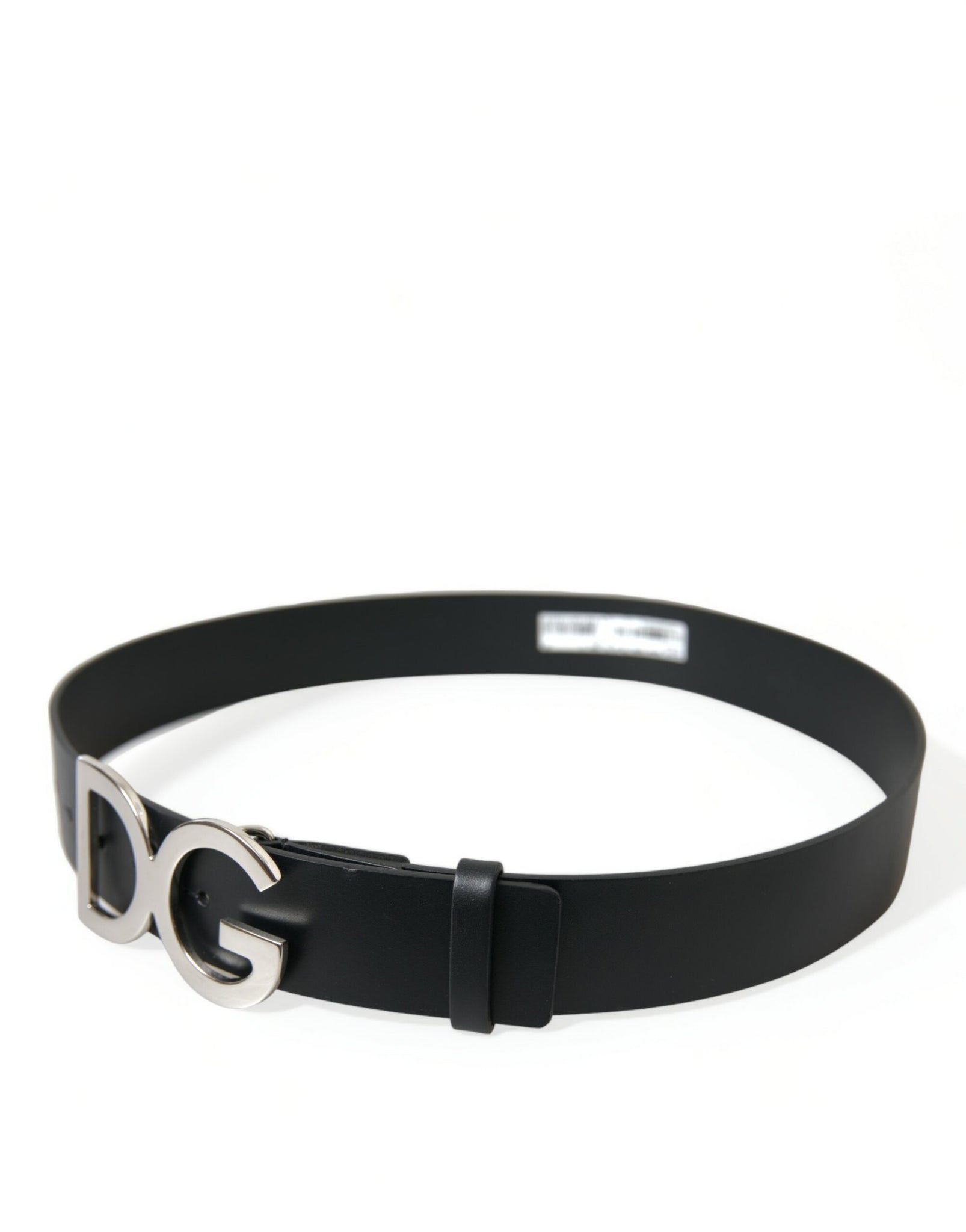 Dolce & Gabbana Black Leather Silver Logo Metal Buckle Belt
