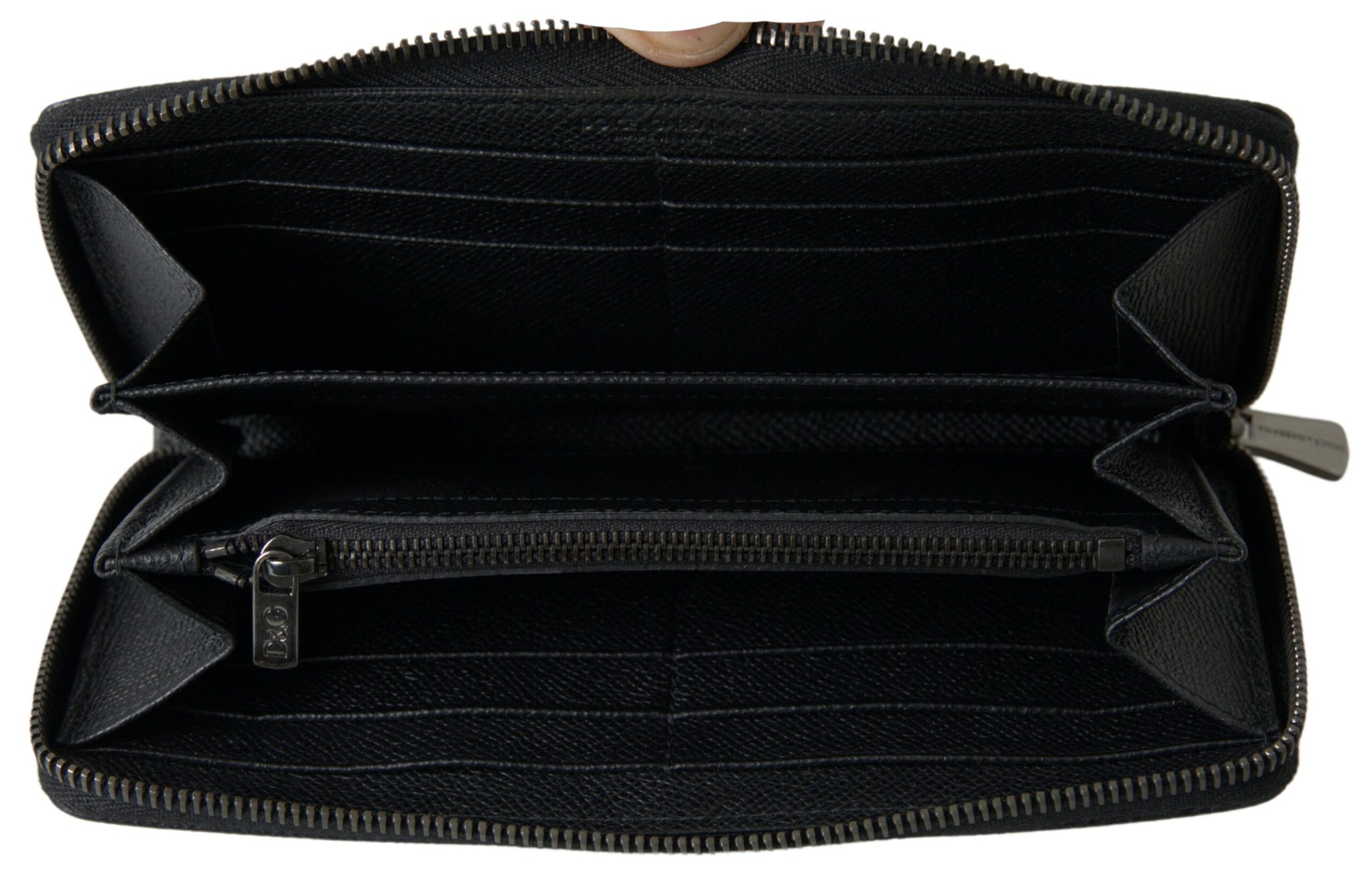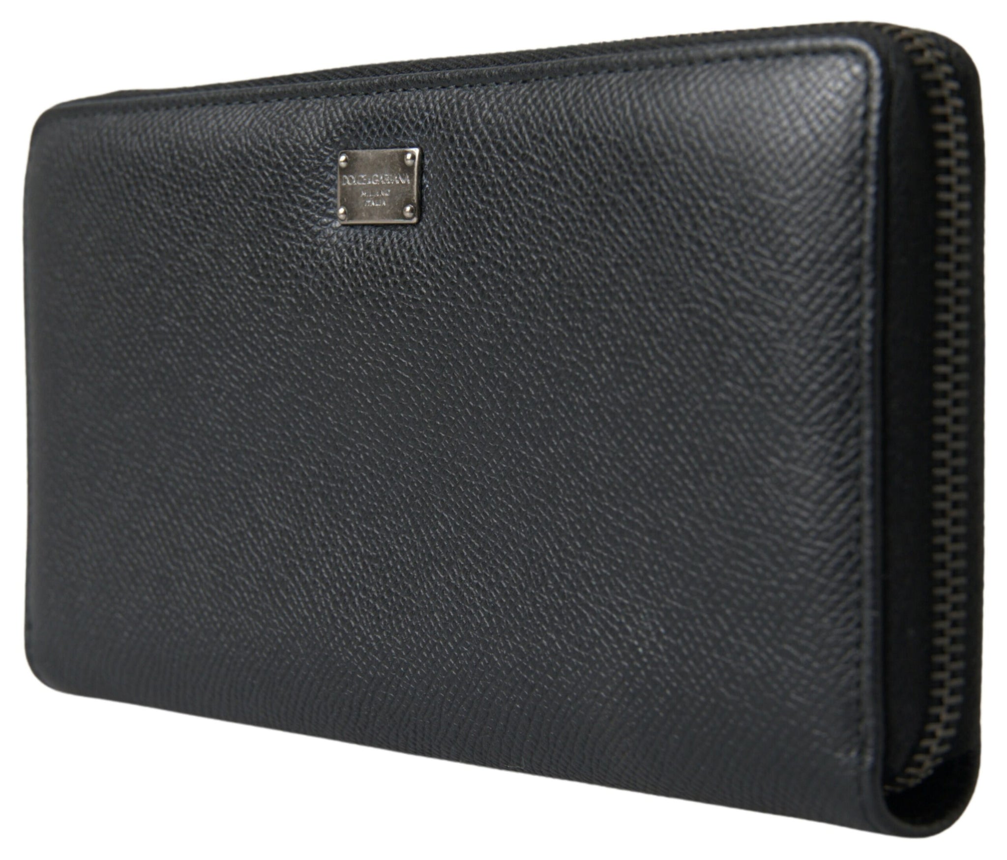 Indulge in the opulence of Dolce & Gabbana with this exquisite black leather continental wallet. Crafted with precision in Italy, this essential accessory boasts a sophisticated logo plaque and a secure zip-around fastening. Organize with ease using its ample card slots, a convenient coin zipper pocket, and full-length bill compartments. Perfect for the discerning gentleman who appreciates luxury in every detail.