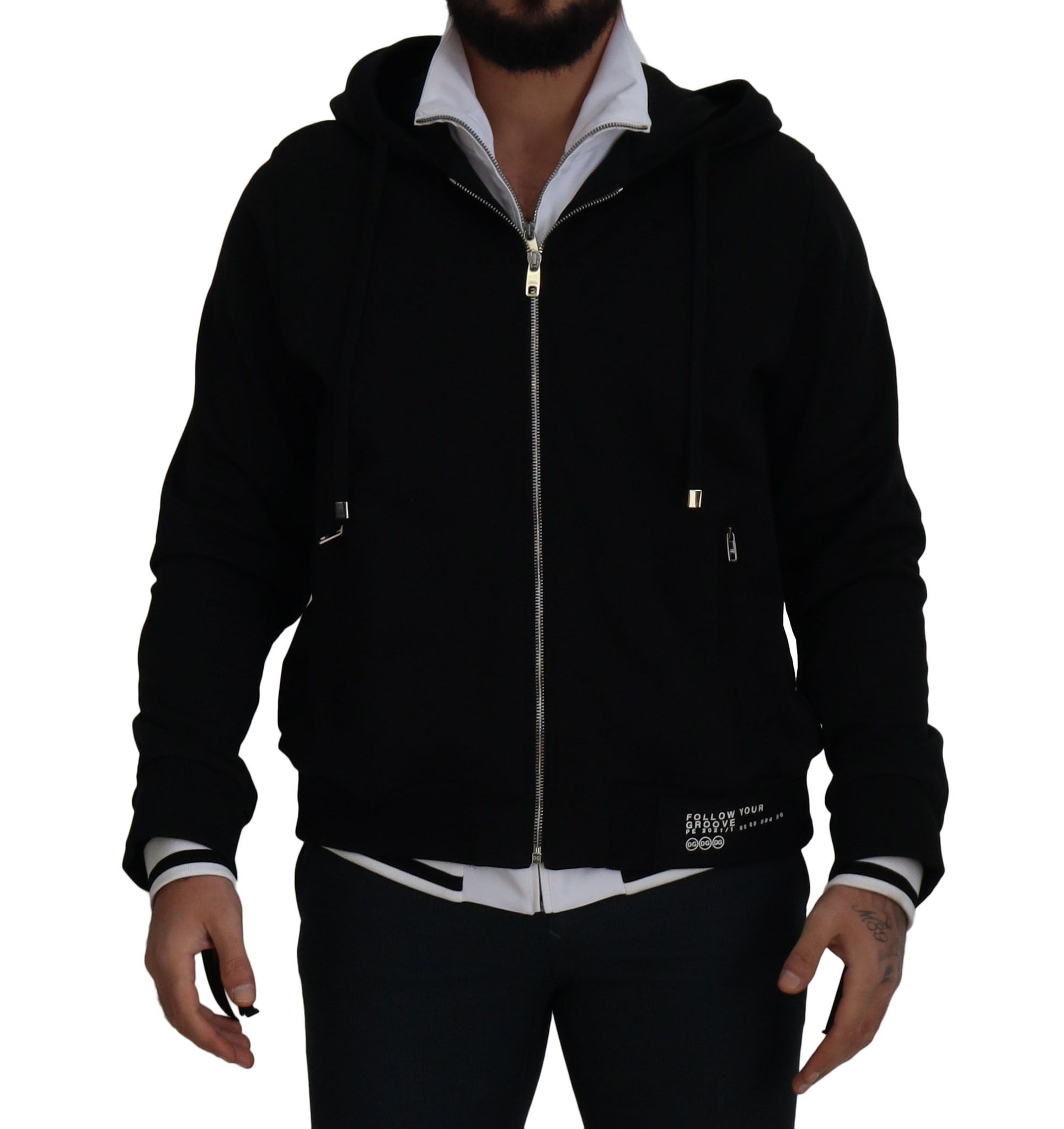 Discover the epitome of Italian sophistication with this Dolce & Gabbana Bomber Jacket, a perfect blend of style and functionality. This brand new, striking black jacket is an absolute must-have with a convenient hood and a seamless zipper closure. Its luxurious details are sure to elevate any outfit, whether for casual events or more stylish gatherings.