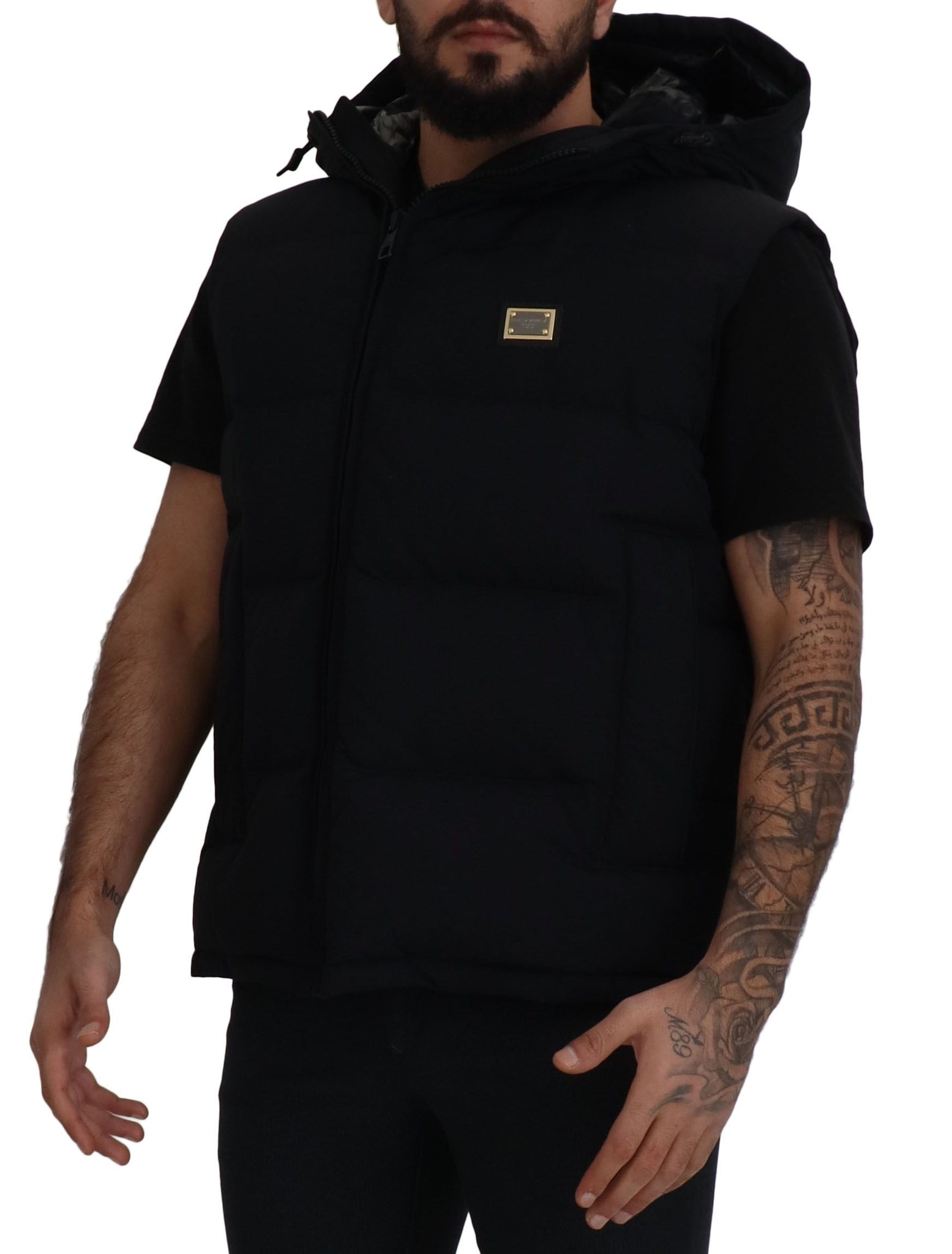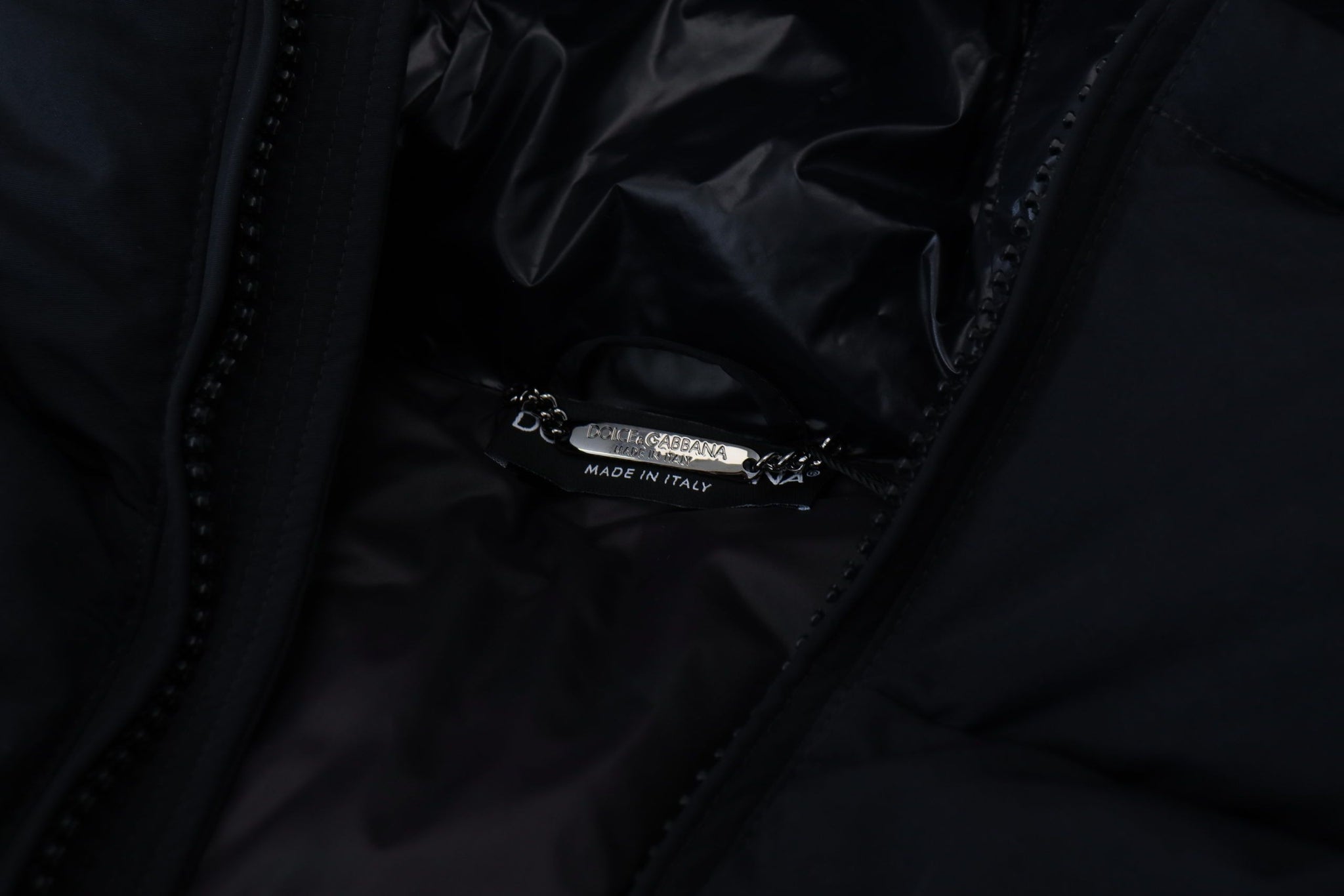 Step out in style with this absolutely stunning, 100% Authentic Dolce & Gabbana short sleeve polyester jacket. This sleek black jacket features a convenient full-zip closure and an adjustable hood, embodying versatility and sophistication. The signature logo plaque adorns the chest, adding an unmistakable touch of luxury. Crafted in Italy, this piece blends high fashion with practicality, making it a perfect addition to your wardrobe.
