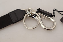 Adorn your essentials with a touch of elegance courtesy of this authentic, brand new Dolce & Gabbana keychain. Featuring a sleek black design paired with shimmering silver accents, brass ring, and logo-engraved metal hardware, this charm is as stylish as it is practical. Make a statement and keep your keys conveniently accessible wherever you go.
