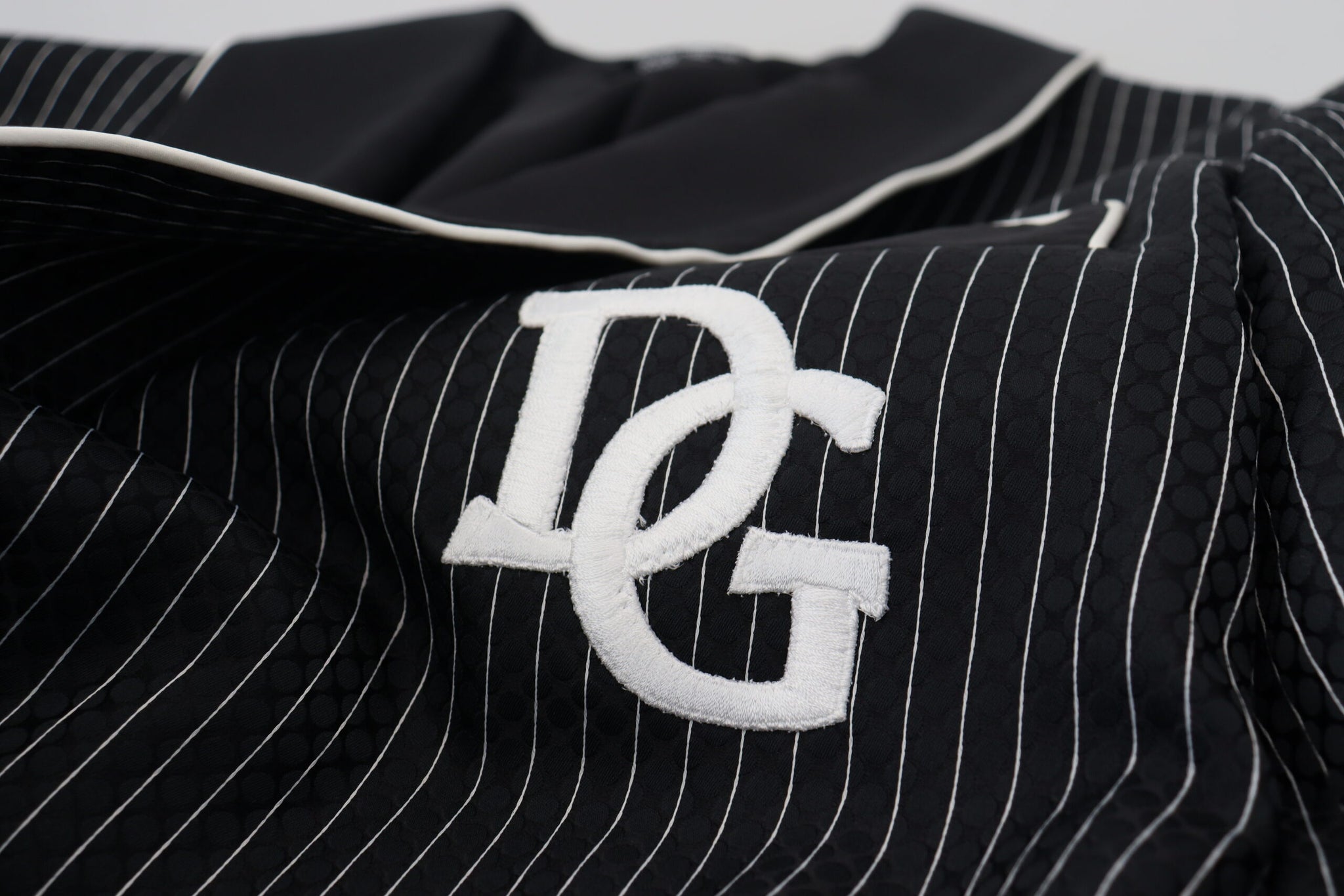Indulge in the epitome of luxury with this stunning blazer by Dolce & Gabbana. This exceptional robe wrap-style jacket, new with tags, is crafted with meticulous attention to detail and features a sleek black and white color scheme accentuated with a stylish DG patch. Tailored for an elegant silhouette, it comes with a waist belt for closure and is lined with sumptuous silk, ensuring a touch of opulence with every wear. Made in Italy, this blazer is a testament to timeless style and sophistication.