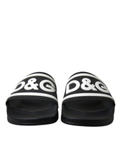 Absolutely stunning, 100% Authentic, brand new with tags Dolce & Gabbana slides. Detailed with a logo print, these chic black slides feature extra-light rubber soles with embossed logo lettering, making them a wardrobe essential.