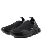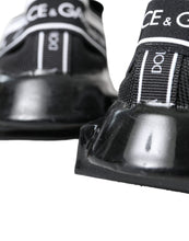 Step out in style with these stunning Sorrento sneakers, expertly crafted by the renowned Dolce & Gabbana. These black and white shoes boast a sleek, round toe silhouette combined with a comfortable slip-on design. Accentuated by elasticated logo tape at the back, they promise a fashion-forward look. With a sturdy rubber sole, and a luxe branded insole, these sneakers offer both supreme comfort and impeccable style. Originating from Italy, they are a testament to exceptional craftsmanship and exclusive design.