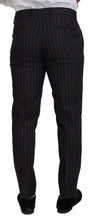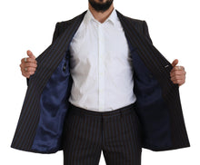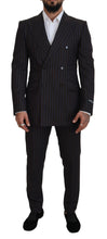 Embody sophistication with this pristine, 100% Authentic, new-with-tags Dolce & Gabbana two-piece suit. This slim-fit ensemble features a double-breasted, striped blazer with peak lapels and a two-button closure, coupled with trousers boasting a concealed zip. Experience the epitome of luxury with handcrafted details, two inside pockets, and an elegant back vent. Crafted from the finest materials in Italy, this suit exemplifies exclusive high craftsmanship, ready to elevate your wardrobe.