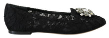 Indulge in the epitome of Italian craftsmanship with these exquisite Dolce & Gabbana Vally flat shoes. Perfectly constructed from the renowned Taormina lace, these slippers boast an elegant almond toe, a luxuriously branded leather insole, and a comfortable flat leather sole complemented by a durable rubber section, ensuring longevity and ease of wear. The cherry on top is the dazzling crystal flower embellishment that adds an irresistible touch of glamour to these already stunning shoes. Step out in style and enjoy a blend of fashion and function.