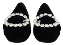 Step into luxurious comfort with our exquisite velvet loafers, emanating elegance and timeless style. Crafted with the finest materials, these enchanting black flats feature striking clear crystals and sophisticated logo details. Dolce & Gabbana’s commitment to quality and Italian craftsmanship assures unparalleled comfort and long-lasting wear.