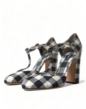 Step into elegance with these stunning T-strap Mary Jane’s heels by Dolce & Gabbana. These heels feature a charming black and white check pattern, evoking a sense of classic style perfect for summer picnics and breezy boardwalk strolls. With a retro silhouette, chunky heel, and luxurious textile and leather construction, they’re not just shoes, but a fashion statement. Each step is a testament to your impeccable taste, delicately detailed with the brand’s signature logo. Embrace the hottest trend of the season with these authentic, Italian-made beauties, complete with tags.