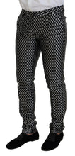 Embrace the epitome of Italian luxury with this stunning Dolce & Gabbana suit, perfect for those who appreciate the finer things in life. This exquisite two-piece suit, featuring a distinctive black and white fantasy pattern, is designed to make a statement at any upscale event or business meeting. The single-breasted blazer secures with a sleek one-button closure and pairs impeccably with the slim-fitting trousers, designed for a tailored silhouette. Experience unparalleled craftsmanship and sophistication with this beautiful ensemble, tailored from a blend of silk and elastane, providing just the right amount of stretch for comfort without compromising on style. The suit boasts two inner pockets and a modern open vent in the back, ensuring functionality meets fashion. Made in Italy, this suit is a testament to high-end design and quality.