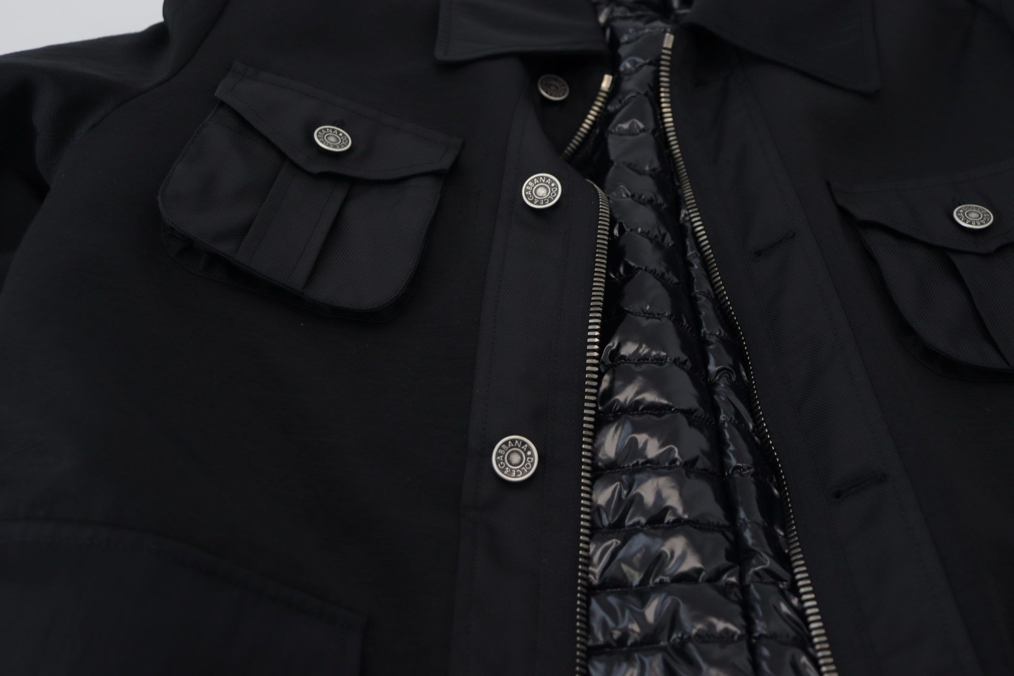 Indulge in the epitome of sophistication with this exquisite jacket by Dolce & Gabbana. Tailored to perfection, this collared full-zip jacket blends luxurious virgin wool, nylon, and cashmere, ensuring a combination of warmth, comfort, and an impeccable fit. Featuring the elegance of black, this piece is an essential addition to any discerning gentleman’s wardrobe. Detailed with subtle logo accents and crafted in Italy, the jacket exudes the renowned quality and style that Dolce & Gabbana is celebrated for.
