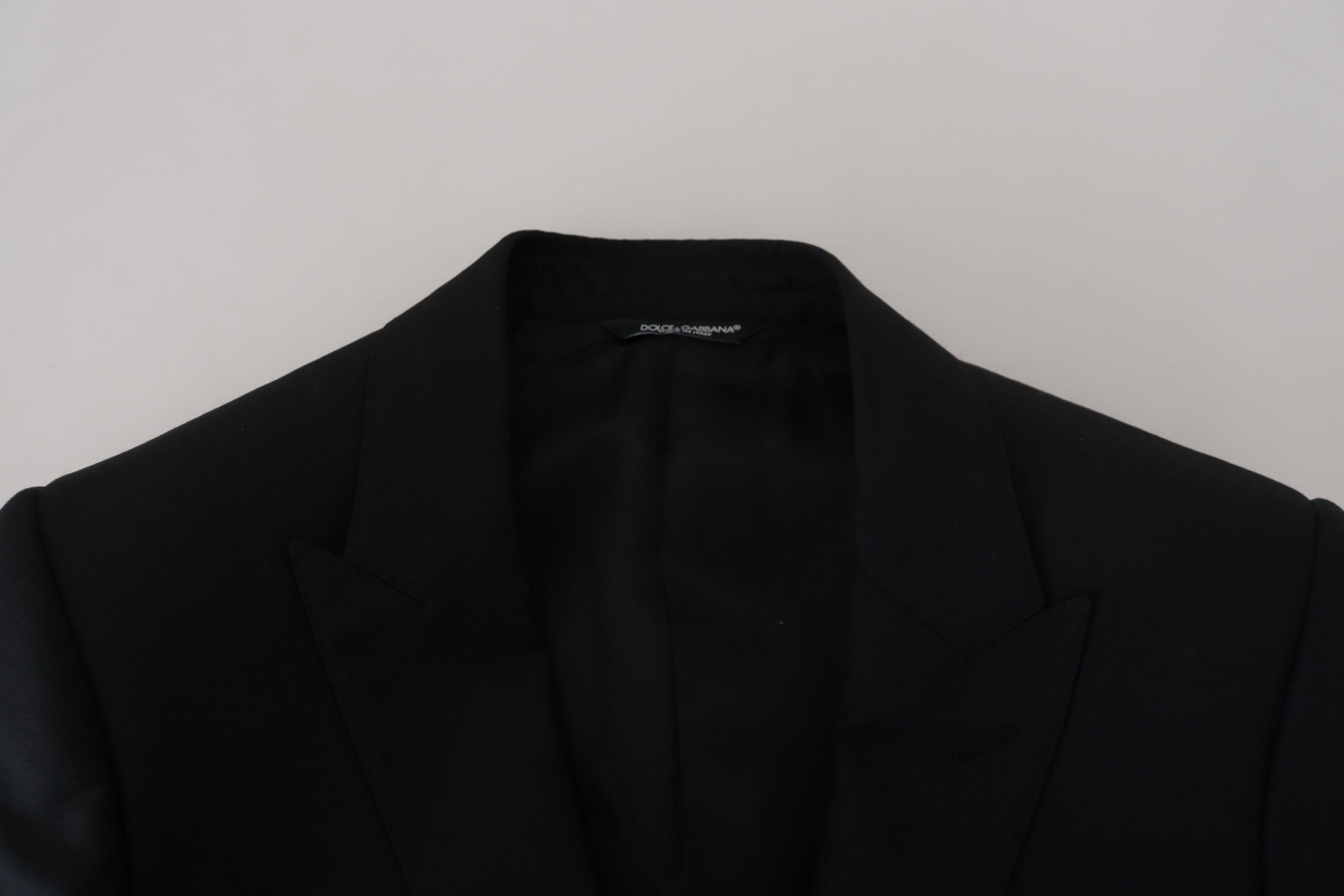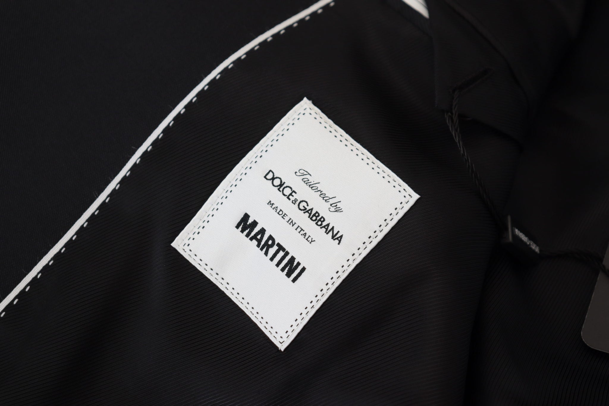 Step into the world of high fashion with this sleek and sophisticated blazer from Dolce & Gabbana. Exquisitely tailored, this MARTINI Single breasted blazer is crafted from a luxurious blend of virgin wool and silk, offering a perfect slim fit that maximizes comfort without compromising on style. The deep black color and notch style lapel elevate your ensemble, making it an ideal choice for formal events or stylish evenings out. With its Italian craftsmanship and the elegant touch of Dolce & Gabbana, this blazer is the epitome of luxury menswear.