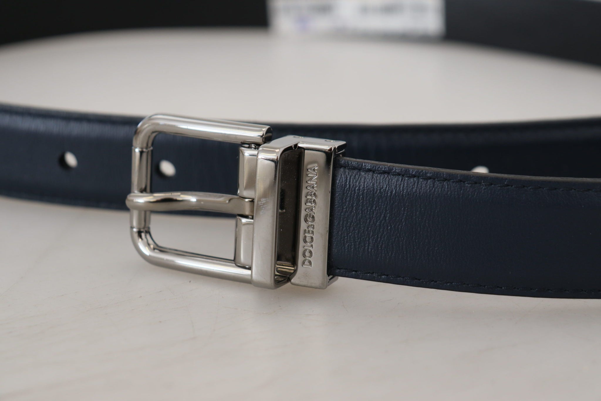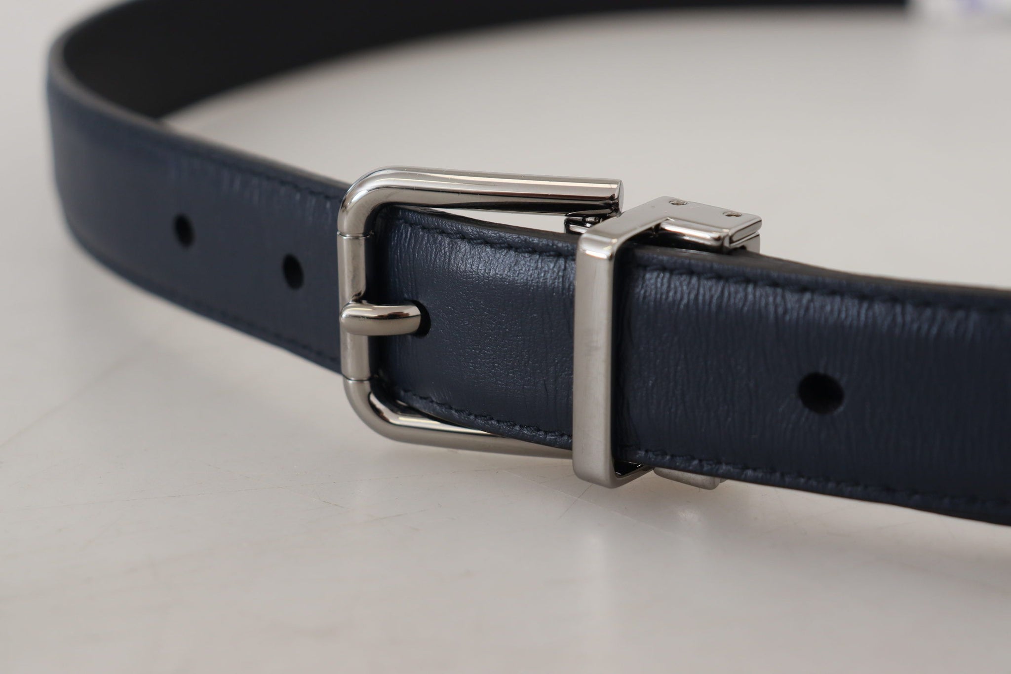 Embrace luxurious accessorizing with this Dolce & Gabbana belt, crafted from high-quality calf leather. This brand new stunning piece boasts a metal buckle closure, adding a touch of elegance to any outfit. With its vibrant blue hue and eye-catching design, it effortlessly combines both function and high-fashion flair, perfect for the discerning gentleman.