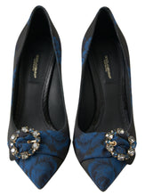 Sophistication meets glamour in these stunning high heels by Dolce & Gabbana. Crafted with the finest materials, these classic blue pumps are a testament to luxury fashion, featuring exquisite crystal detailing on the tips. The heel, constructed from premium Ayers, promises durability and unmatched style. The leather bottom sole is a hallmark of quality, ensuring comfort with every step. Indulge in Italian craftsmanship and elevate your ensemble with these eye-catching heels.