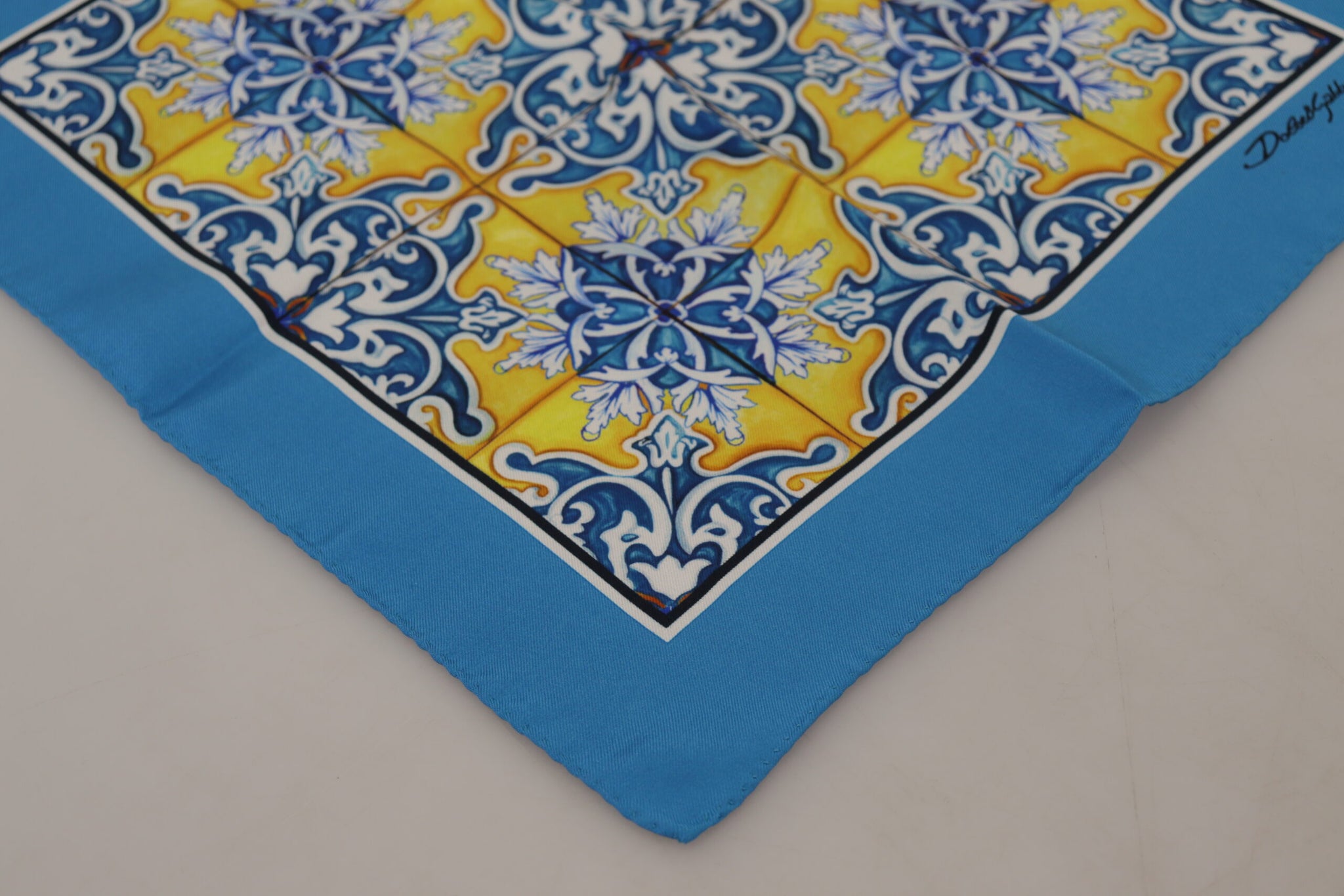Indulge in the epitome of Italian luxury with this exquisite Dolce & Gabbana Men’s Square Scarf Wrap. Crafted from pure, sumptuous silk, this scarf boasts a vibrant blue hue adorned with a refined majolica pattern, effortlessly elevating your ensemble with a touch of sophistication. Whether draped over a blazer or wrapped for warmth, it adds a distinguished flair to any gentleman’s attire.