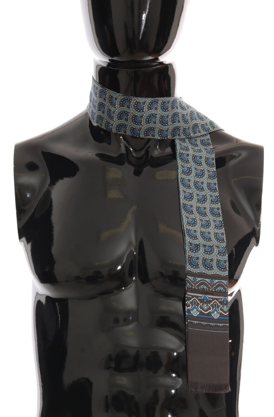 Dolce & Gabbana Blue Patterned Silk Slim Wrap Fringes Scarf