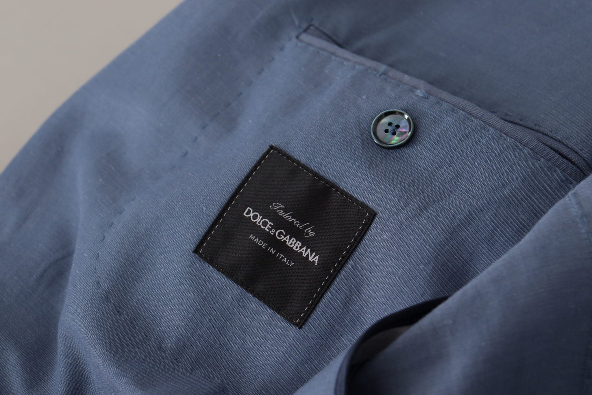 Reflect your sophisticated style with an elegant touch with this stunning single breasted blazer by Dolce & Gabbana. Crafted from a premium blend of linen and cotton, featuring a notch style lapel and sophisticated blue hue complemented by logo embroidery, this jacket ensures a sharp silhouette for any formal or smart-casual event. Crafted in Italy, this piece epitomizes luxury and high craftsmanship, offering exclusivity with every wear and is fully lined in pure silk for an extra touch of opulence.