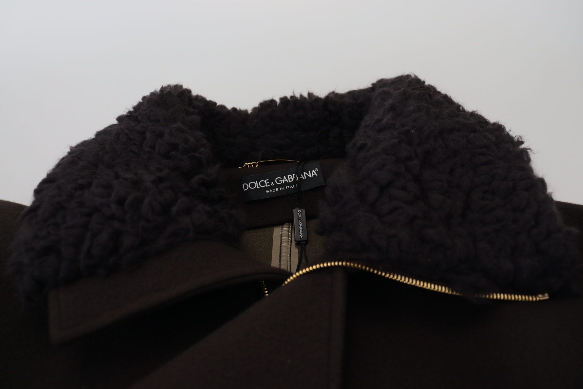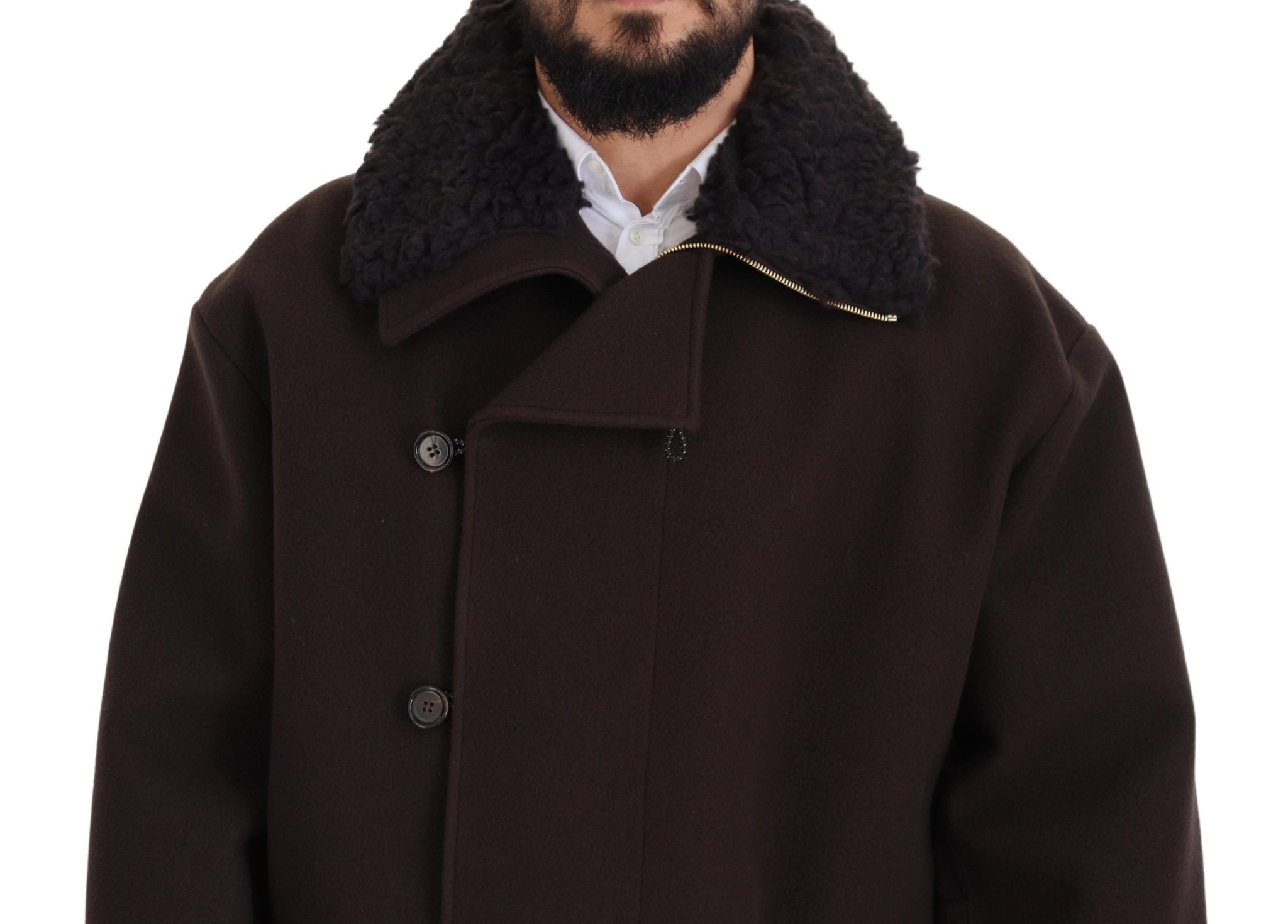 Indulge in the epitome of sophistication with this luxurious shearling coat by Dolce & Gabbana. This stylish outerwear is a standout piece for anyone seeking to elevate their wardrobe. The double-breasted design provides a classic touch to your ensemble, featuring a versatile dark brown hue that complements any outfit.