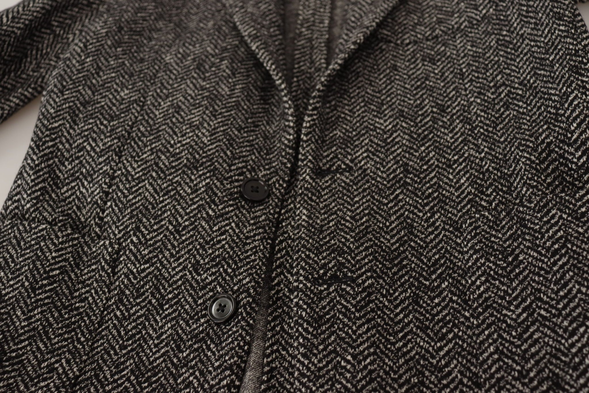 Step out in sophistication with this Dolce & Gabbana single-breasted jacket, a testament to timeless style and luxury. Crafted from a blend of cotton and wool, this piece features a classic notch style lapel, presented in a handsome gray herringbone pattern. With a sharp two-button closure and the brand’s iconic logo detailing, this jacket is the embodiment of Italian elegance and superior craftsmanship.