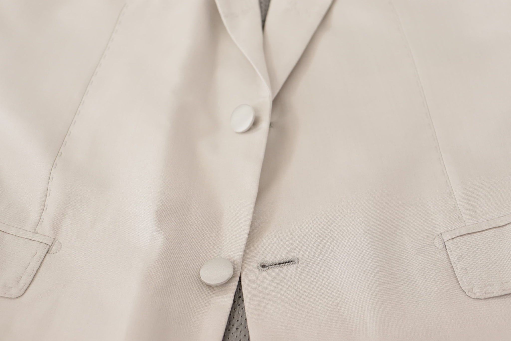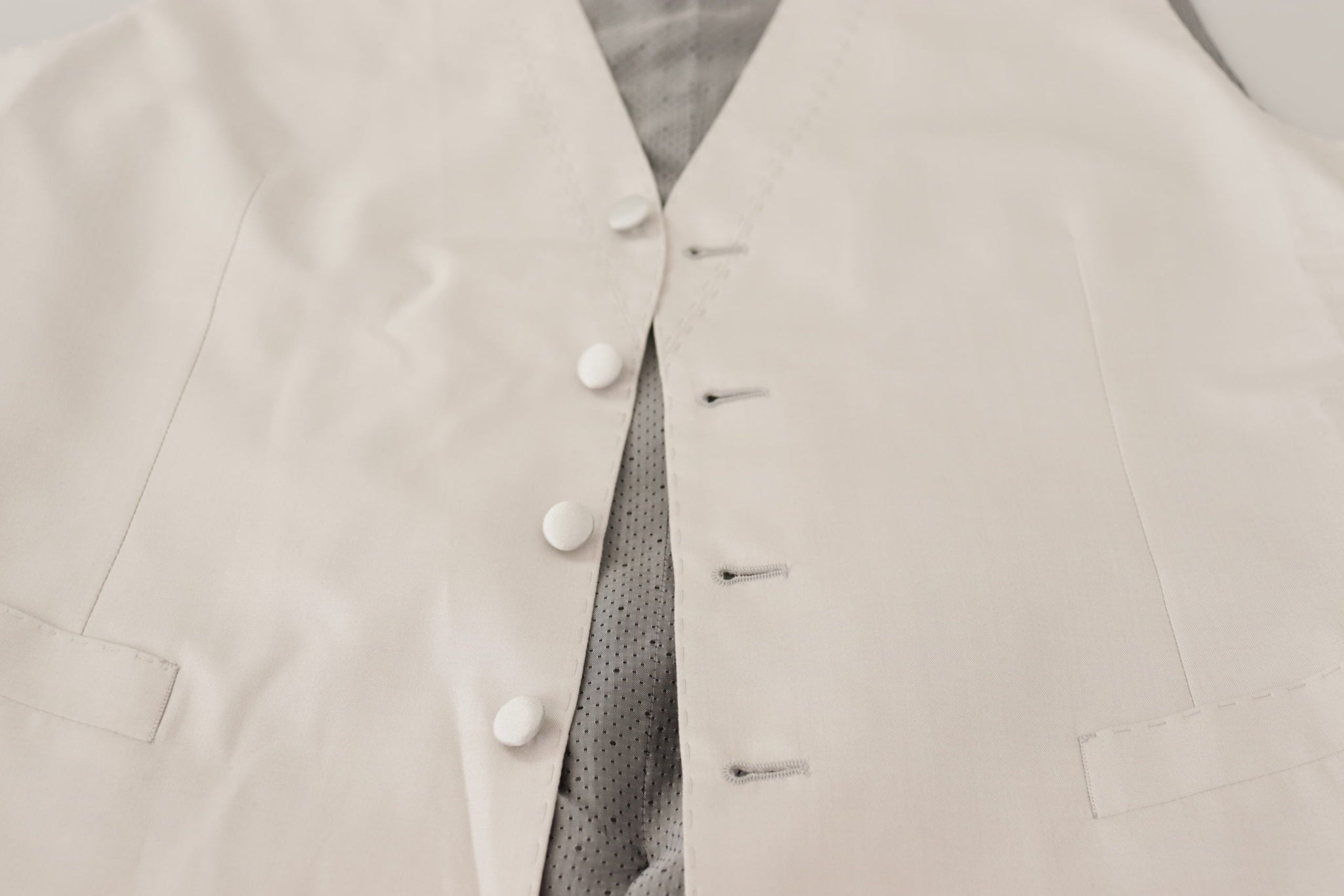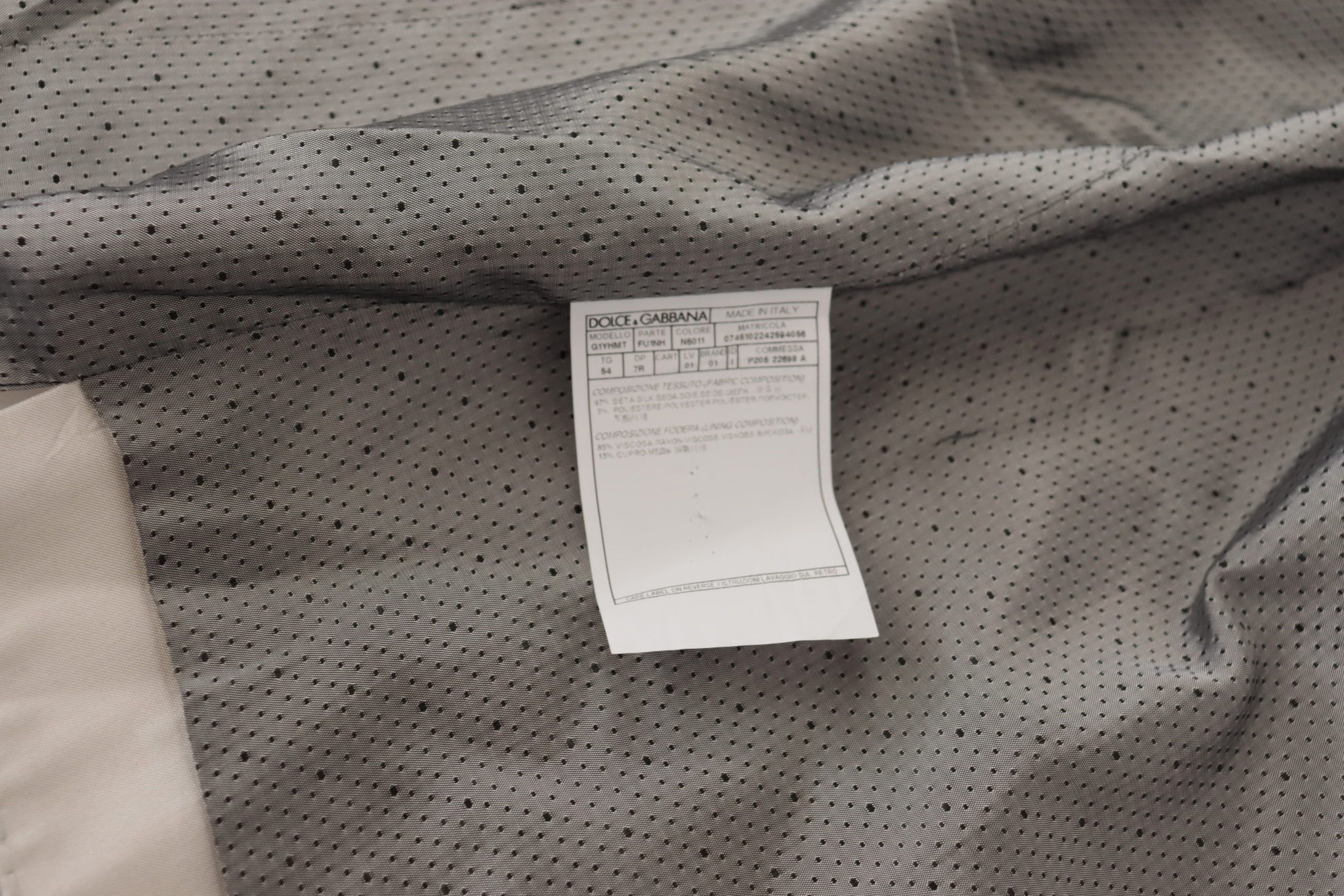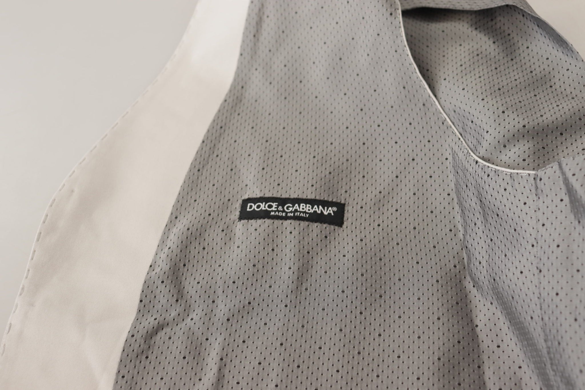Infuse elegance into your wardrobe with this impeccable Light Gray Suit Jacket Set from Dolce & Gabbana. Perfect for exclusive events or as a remarkable addition to your business attire, this set exudes sophistication and a keen sense of style. The suit features a single-breasted two-piece jacket and vest, graced with peak lapels and a sleek two-button closure. The vest completes the look with a full button closure and an adjustable strap for the perfect fit. Finely crafted in Italy, the suit is a testament to the brand’s commitment to luxury and attention to detail.