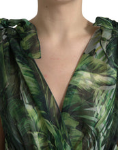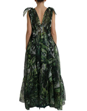 Gorgeous brand new with tags, 100% Authentic Dolce & Gabbana green silk flocked leaf georgette dress featuring plunging v-neck, adjustable shoulder straps, bow detailing, concealed rear fastening, maxi skirt and unlined.