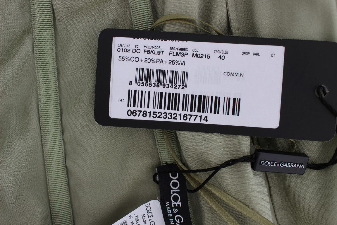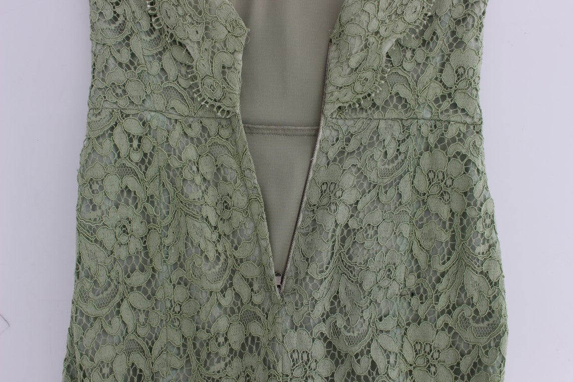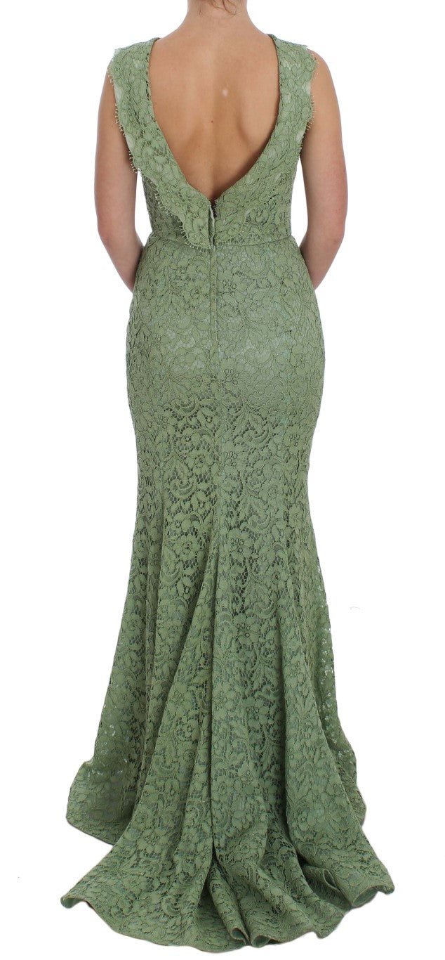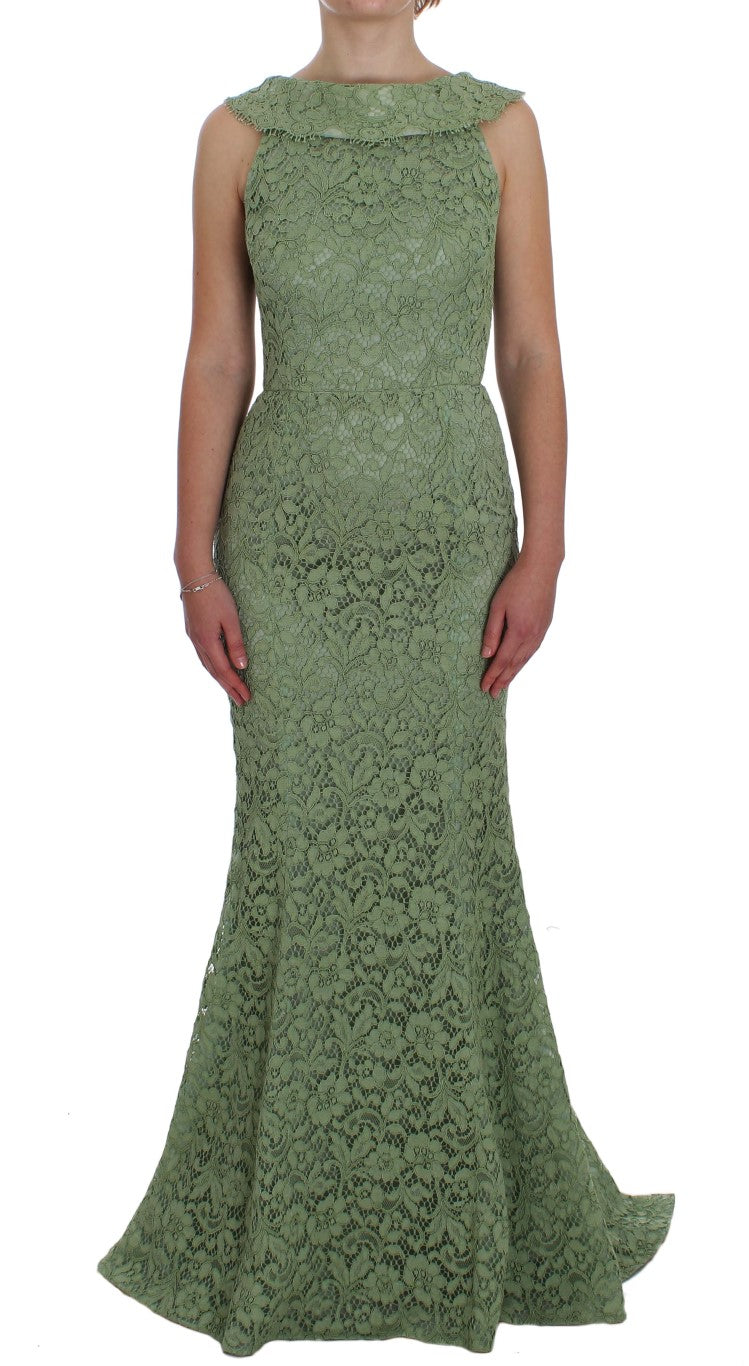 Experience the epitome of Italian luxury with our Dolce & Gabbana green floral lace sheath long maxi dress. This exquisite garment is brand new with tags, ensuring 100% authenticity and untouched elegance. Adorned with a vibrant green hue, the dress features a delicate floral lace design that radiates sophistication. A well-crafted back zipper and an interior corset provide structure and form, while the stretch silk lining promises a comfortable and figure-enhancing fit.