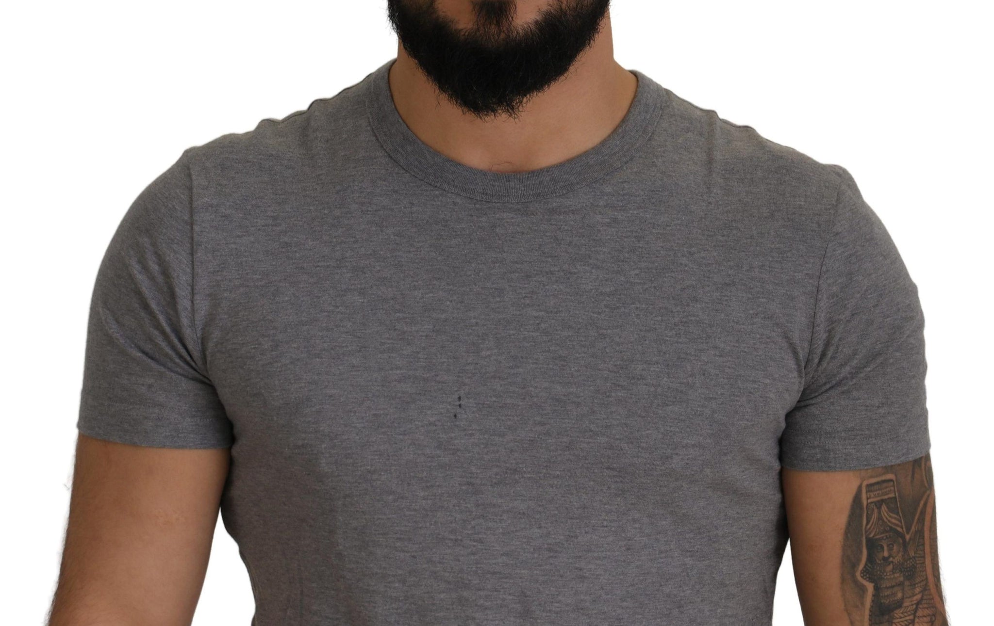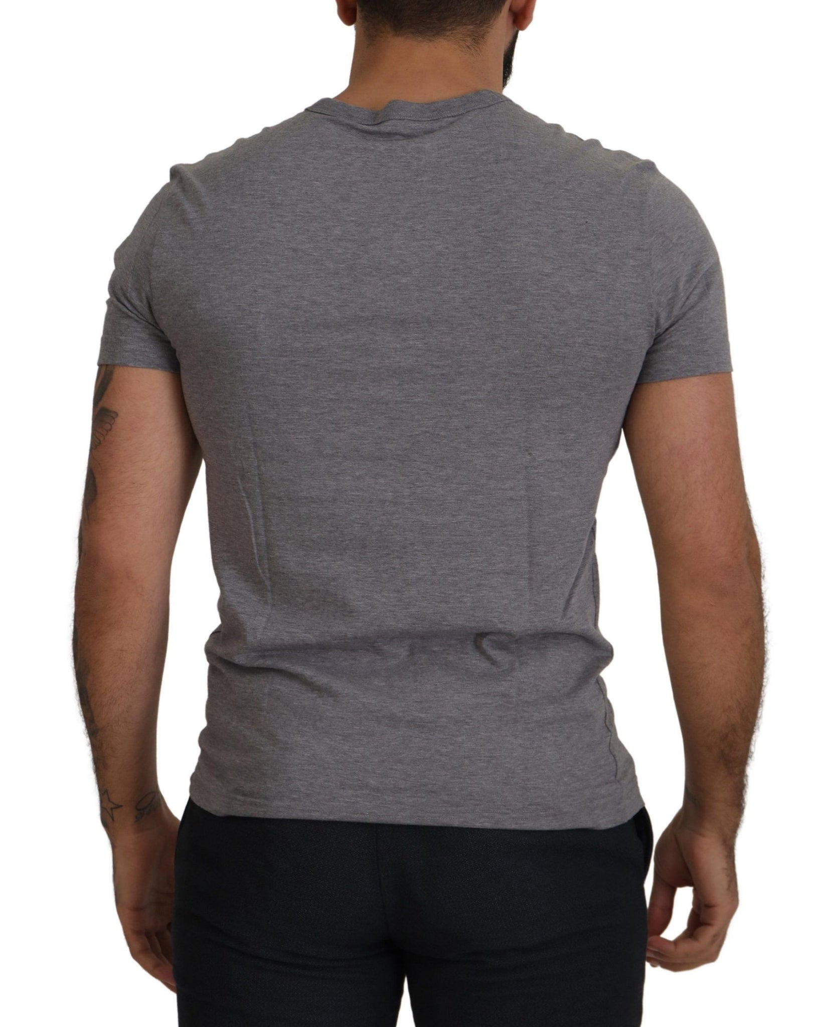 Steeped in sophistication with a casual edge, this Dolce & Gabbana t-shirt is sure to elevate your everyday wardrobe. Boasting a chic grey hue, this 100% cotton tee features a standout DG logo patch, perfectly balanced with its short sleeves and classic crew neckline for an amalgamation of comfort and trademark luxe.