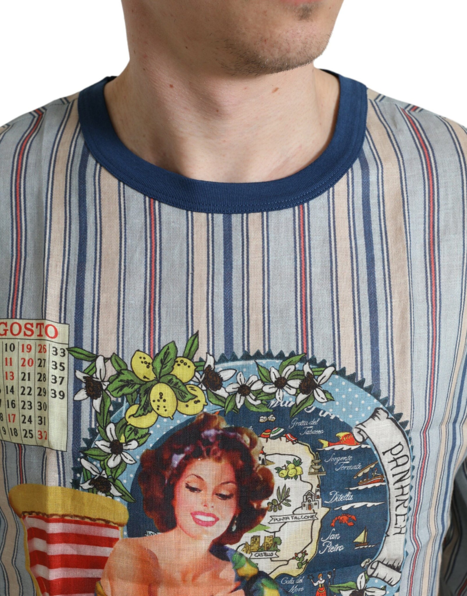 Absolutely stunning, 100% Authentic, brand new with tags Dolce & Gabbana linen t-shirt with stained print features a round neck and short sleeves.