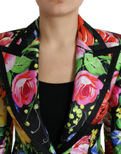 Gorgeous brand new, 100% Authentic Dolce & Gabbana multicolor silk blend blazer featuring all-over floral print, peak lapels, satin trim, front button fastening, front flap pockets, long sleeves and buttoned cuffs.