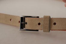Step up your accessorizing game with this exquisite nude belt from Dolce & Gabbana. Perfectly blending luxury with function, this brand new belt comes with its original tags and box. Designed for the fashion-forward woman, the belt is made from high-quality suede and features a stunning metal buckle engraved with the iconic logo. Handcrafted in Italy, this belt is not just a fashion statement but a piece of artistry to cinch your waist with an air of sophistication.