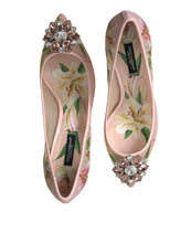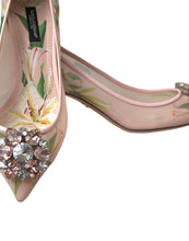 Step into luxury with these exquisite Dolce & Gabbana classic pumps, showcasing a vibrant pink floral design embellished with clear and pink crystals for an irresistible sparkle. These pumps are not only a statement of high fashion but also a testament to comfort and quality, perfected with a leather sole for graceful steps. Crafted in Italy, these shoes are the epitome of elegance and craftsmanship.