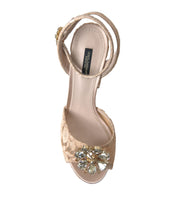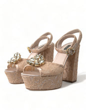 Step out in high style with these stunning Dolce & Gabbana platform block heel sandals, a blend of luxury and elegance perfect for any high-fashion ensemble. Captivate the crowd with the elaborate lace craftsmanship, glistening gray crystals, and the romantic light pink hue that radiates confidence. Crafted in Italy, these heels promise both top-tier quality and exceptional comfort. Ideal for those seeking to make a statement at any upscale event.