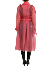 Gorgeous brand new, 100% Authentic Dolce & Gabbana pink silk long jacket with collar and belted waist.