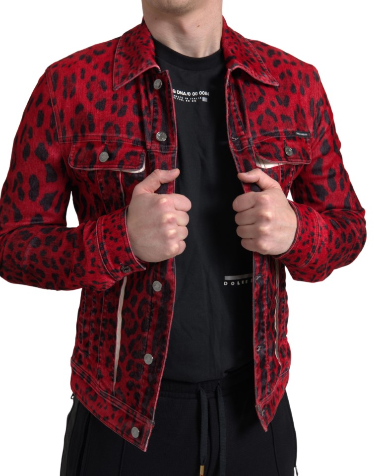 Discover the epitome of Italian luxury with this standout red leopard print denim jacket by Dolce & Gabbana. This new piece with tags is perfect for those seeking a blend of modern style and classic sophistication. The bold red hue paired with the eye-catching leopard design ensures you make a statement wherever you go.