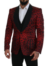Make a striking impression with this Dolce & Gabbana SICILIA three piece suit. This slim-fit ensemble is a testament to classic tailoring with a bold, contemporary twist. The vibrant red leopard print lends an audacious edge to traditional suiting, perfect for those who dare to stand out. The jacket features a sophisticated shawl lapel and button cuffs, while the vest offers an adjustable strap for a custom fit. The trousers continue the sleek look with a mid-rise cut and a stylish three-way zipper closure. Carefully crafted in Italy, this suit exudes luxury and exclusivity with meticulous attention to detail.