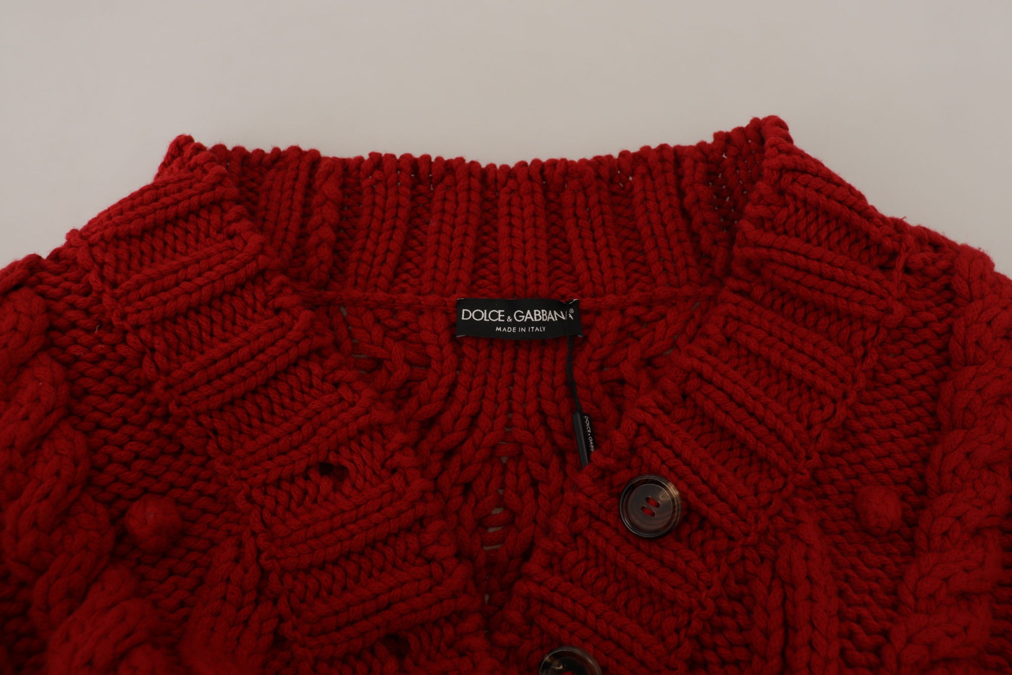 Discover the epitome of Italian craftsmanship with this striking Dolce & Gabbana cardigan. Brand new with tags, it’s a blend of luxury and comfort in a vibrant red. Crafted from 100% virgin wool, this free-cut model ensures a cozy feel without compromising on style. Accented with the iconic logo, it’s a fashion-forward addition to your knitwear collection, proudly made in Italy.