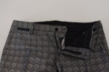 Discover the epitome of Italian luxury with this 100% authentic Dolce & Gabbana MARTINI suit. Effortlessly elevate your formalwear with this stunning silver two-piece suit, featuring exquisite craftsmanship and a sleek, slim fit design. The blazer showcases a stylish peak lapel and is complemented with a chest pocket, sophisticated side flap pockets, and elegant button cuffs. Accompanying trousers offer a perfect match with their meticulous mid-rise cut, button and zip fly, and convenient belt loops for an impeccable silhouette. Luxury meets practicality with logo details and this suit’s high-quality fabric blend creating a piece that’s not only visually striking but also comfortably wearable for any distinguished event.