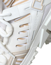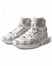 Step into luxury with these upscale Sorrento sneakers by Dolce & Gabbana. Crafted with precision in Italy, these sneakers blend comfort and high fashion seamlessly. They feature a sleek round toe and easy slip-on style, complemented by a convenient pull tab at the rear. The ridged rubber sole offers durability and excellent traction for an active lifestyle. With their pristine white and beige color scheme, these sneakers exude a sophisticated yet contemporary vibe. The intricate composition combines viscose, calf, lamb, nylon, and elastane for a comfortable fit and enduring quality. Adorned with subtle logo details, these sneakers are a testament to Dolce & Gabbana’s commitment to luxurious craftsmanship and elegant design.