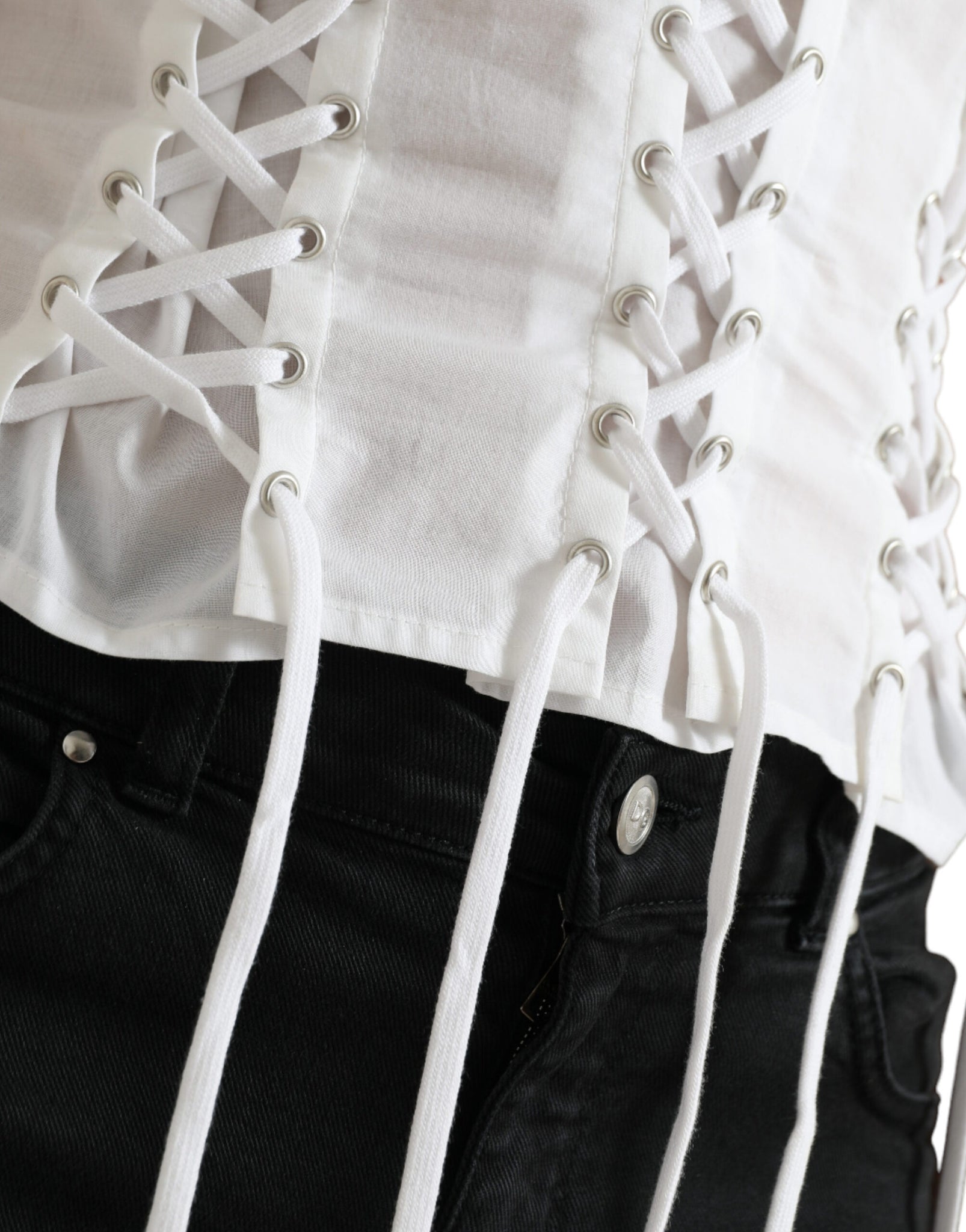 Gorgeous brand new, 100% Authentic Dolce & Gabbana lace up fastened blouse top with floral cut out.