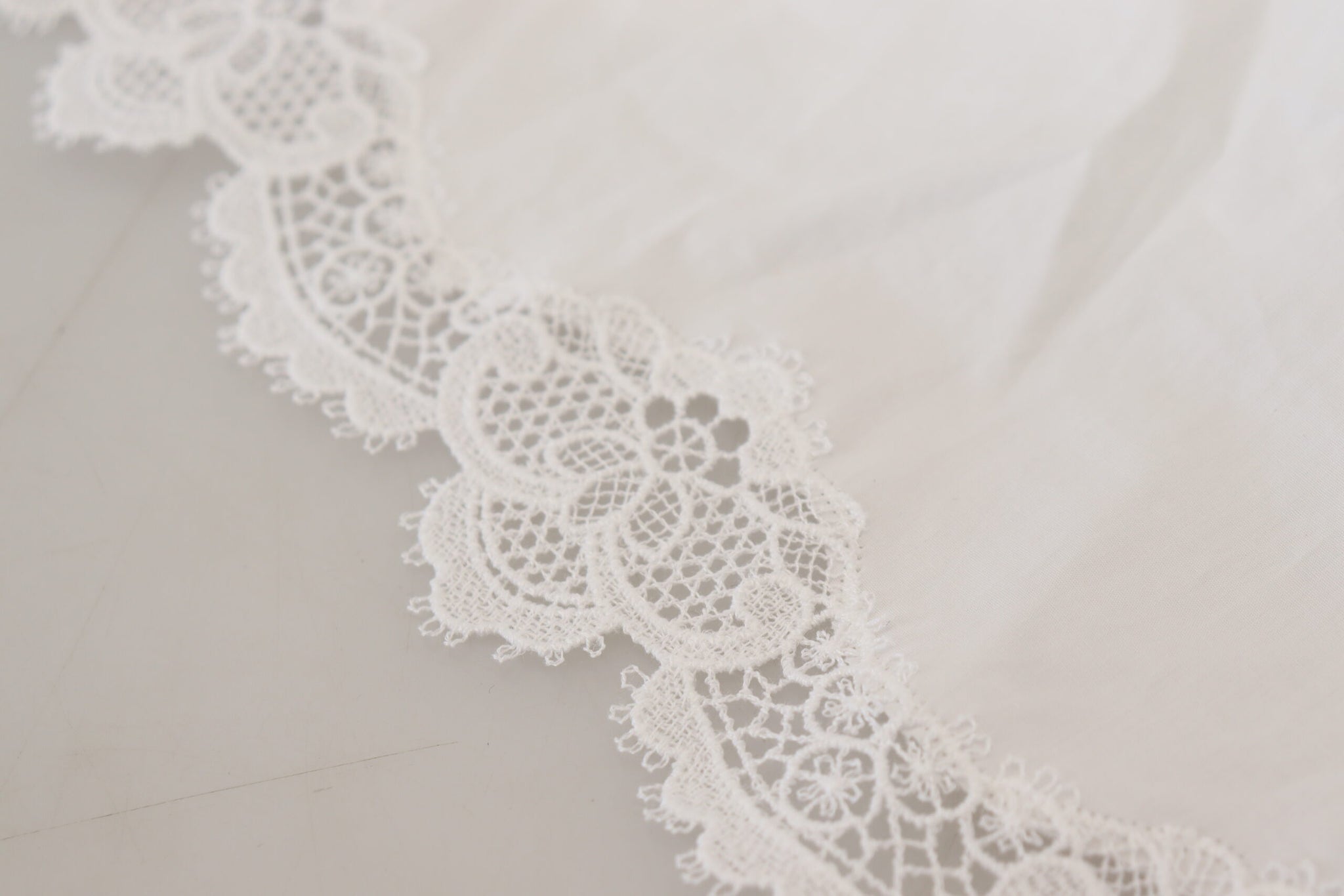 Introduce timeless elegance into your wardrobe with this stunning white blouse from Dolce & Gabbana. Perfect for any occasion that calls for a touch of sophistication, the blouse features delicate lace trim that exudes femininity. Crafted in Italy, this piece is a testament to exquisite craftsmanship and luxurious fabric blending.