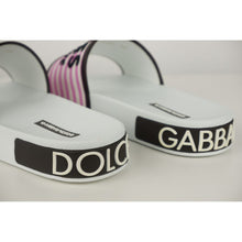 Indulge in the epitome of luxury with these exquisite white slippers from Dolce & Gabbana. Crafted with a blend of high-quality materials, these slippers feature a durable rubber sole, a canvas upper accented with refined calfskin leather details, lending a touch of elegance to your casual wear. Perfectly constructed in Italy, these sandals offer both supreme comfort and style.