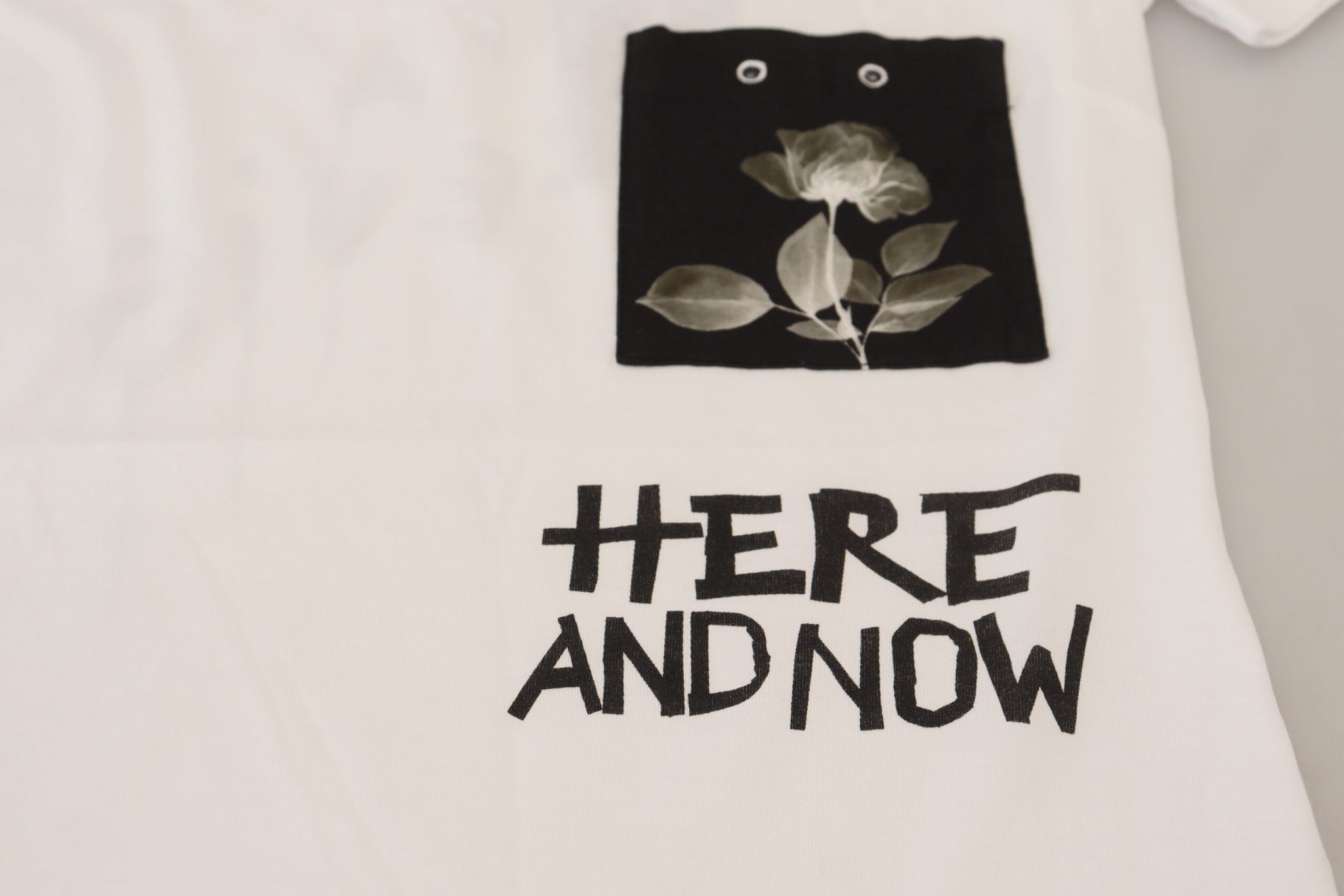 Indulge in the epitome of casual luxury with this Dolce & Gabbana t-shirt. Brand new with tags, this top pairs timeless monochrome aesthetics with a contemporary ‘Here and Now’ motive. Crafted from soft and comfortable 100% cotton, it features a classic crew neck and short sleeves, perfect for creating a polished off-duty look. Logo details reflect the exquisite craftsmanship synonymous with high-end Italian fashion. Experience the blend of comfort and style with this quintessential wardrobe piece.