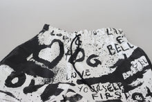 Step into the summer with effortless style in these striking black and white shorts from Dolce & Gabbana. High-quality blend of cotton and silk with a touch of elastane ensures a comfortable and flattering fit, while the bold all-over logo graffiti print makes a statement. Savvy and chic, these mid-waist shorts with an elasticated drawstring waist are perfect for those who love to combine luxury with a casual edge.