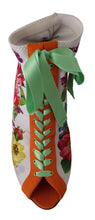 Step out in style with these eye-catching Floral Open Toe Jersey Heels from Dolce & Gabbana. These gorgeous heels are brand new with tags, ensuring 100% authenticity and pristine condition. The design features a vibrant white base with a stunning multicolor floral print, perfect for adding a pop of color to any outfit. With a luxurious leather bottom sole and the iconic logo detail, these made in Italy heels are a blend of comfort and high-fashion.