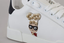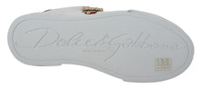 Gorgeous brand new with tags, 100% Authentic Dolce & Gabbana white Portofino sneakers with logo patch embellished. Featuring a logo patch at the tongue, a lace-up front fastening, a round toe, a branded heel counter, a flat rubber sole, and an embellished designer patch to the side.