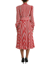 Gorgeous brand new with tags, 100% Authentic Dolce & Gabbana A-line striped maxi dress with back zipper closure and ascot collar.