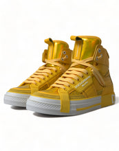 Step into luxury with these stunning Dolce & Gabbana high-top sneakers. Exuding Italian craftsmanship, they feature a bold color-block design in yellow and white, perforated details for a trendy edge, and the iconic logo patch on the side. Fashioned from premium leather and set on a comfy rubber sole, these sneakers meld style and comfort flawlessly, making them an ideal choice for the fashion-forward individual.