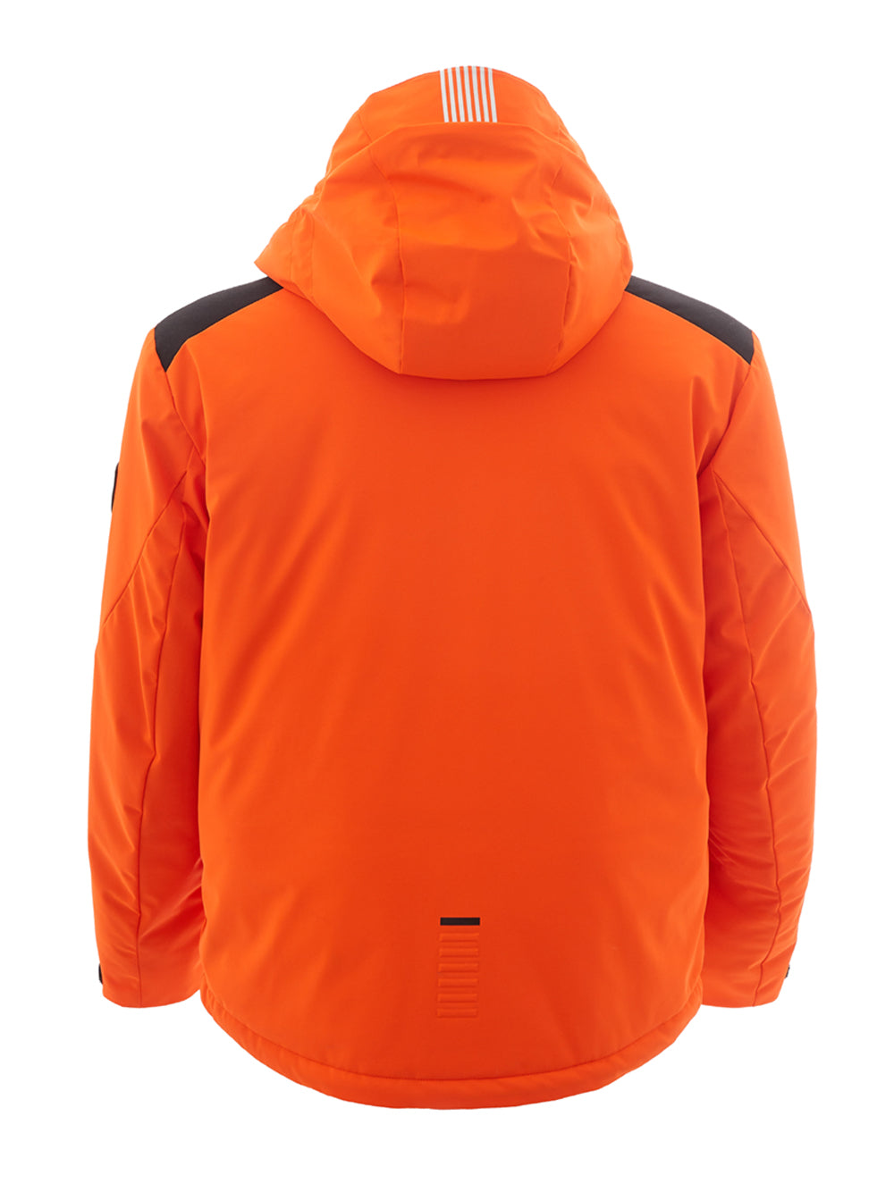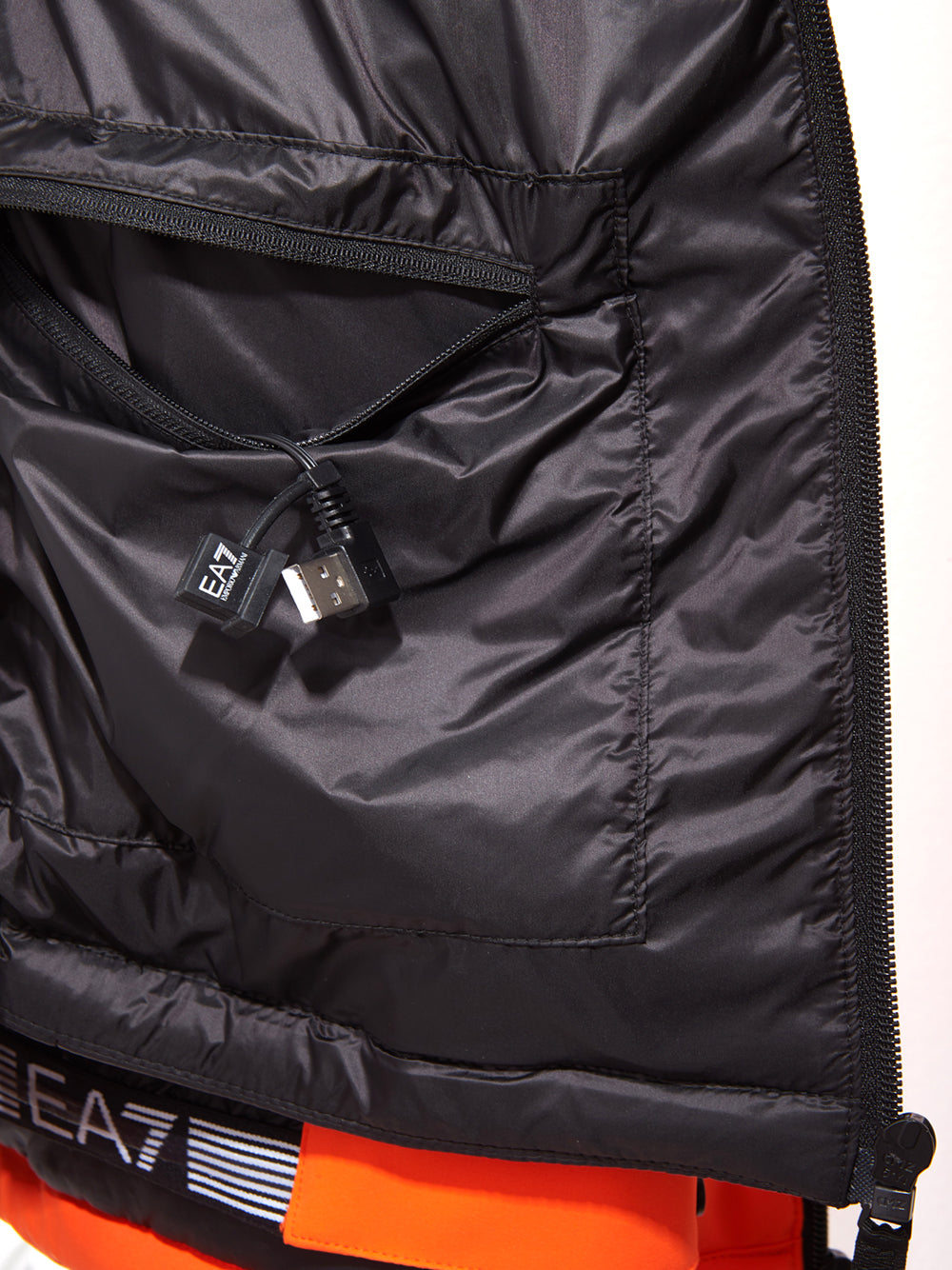 Embrace the chilly season in vibrant style with the EA7 Emporio Armani technical winter jacket, a testament to both fashion and functionality. Featuring a quilted, waterproof, and windproof design, this jacket ensures you stay warm and dry without compromising on style. The standout orange hue makes a bold statement, while the front zip closure and zipped side pockets add practicality to its sleek silhouette. A removable, sleeveless inner jacket in classic black boasts the famed logo, offering versatility and extra insulation on colder days.