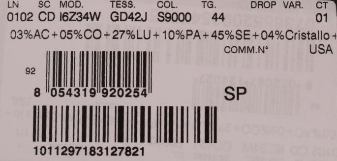 - Material: 45% silk, 27% metal fibre, 10% nylon, 6% real brass, 5% cotton, 4% crystal, 3% acetate